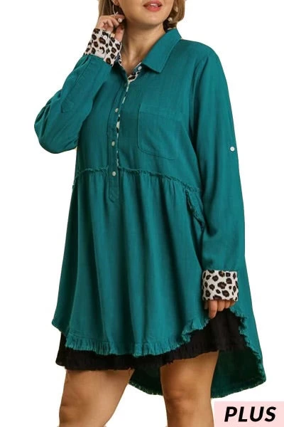 11 CP-Z {Away For A While} Umgee Teal W/Leopard Tunic PLUS SIZE XL 1X 2X