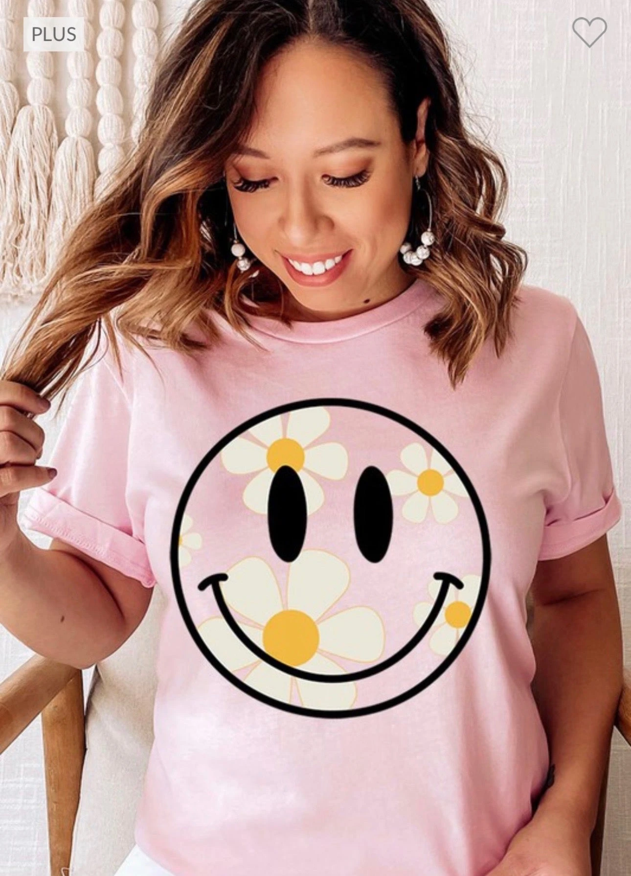 11 GT-N {Smiley Daisy} Pink Daisy Smiley Face Graphic Tee PLUS SIZE 1X 2X 3X