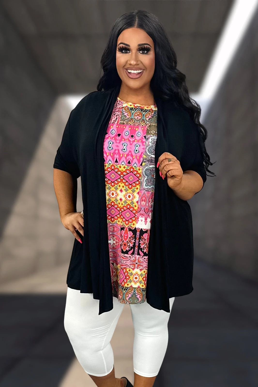 11 OT-B {Splendid Day} Black Short Sleeve Cardigan PLUS SIZE 1X 2X 3X