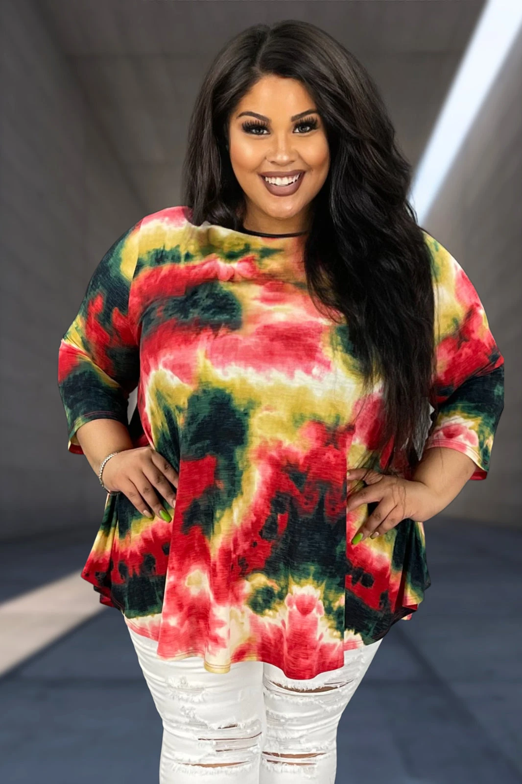 11 PQ-O {A New Treat} Red Tie Dye Top EXTENDED PLUS SIZE 3X 4X 5X