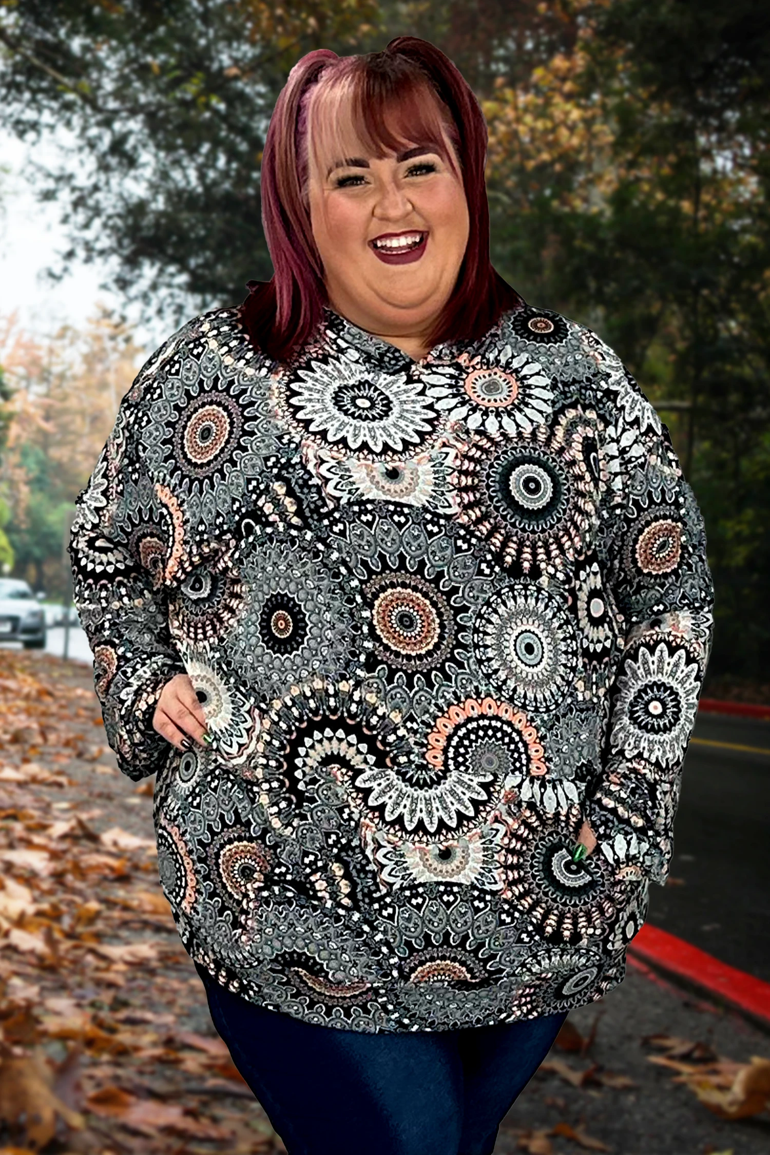 12 HD-B {Play It Smart} Grey Mandala Print Hoodie EXTENDED PLUS SIZE 3X 4X 5X