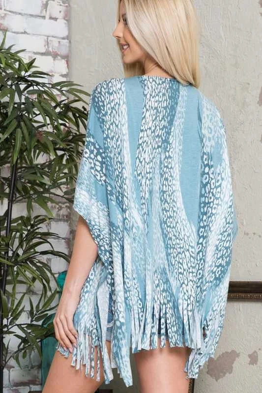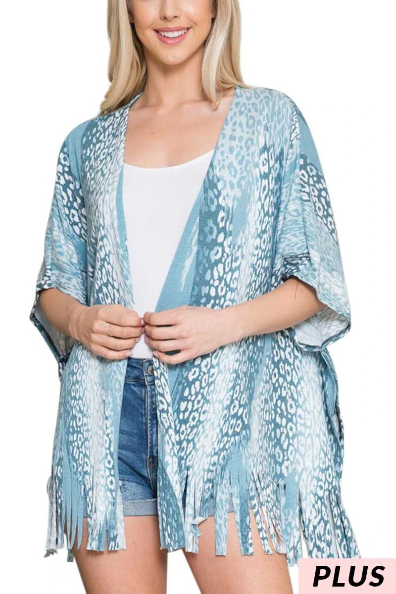 12 OT-A {Wave Rider} Teal Animal SALE!! Print Fringe Hem Kimono PLUS SIZE 1X 2X 3X