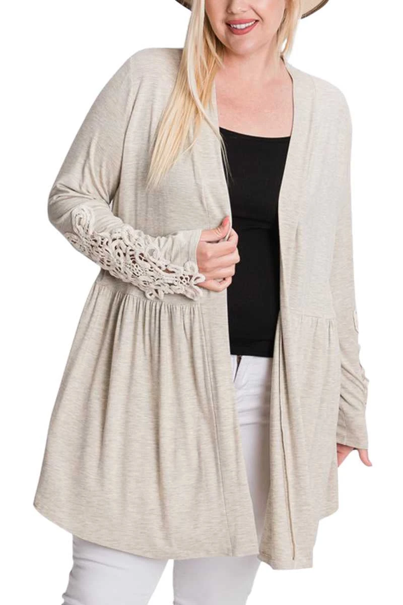 14 OT-U {Tour The Town} Oatmeal Babydoll Cardigan PLUS SIZE XL 2X 3X