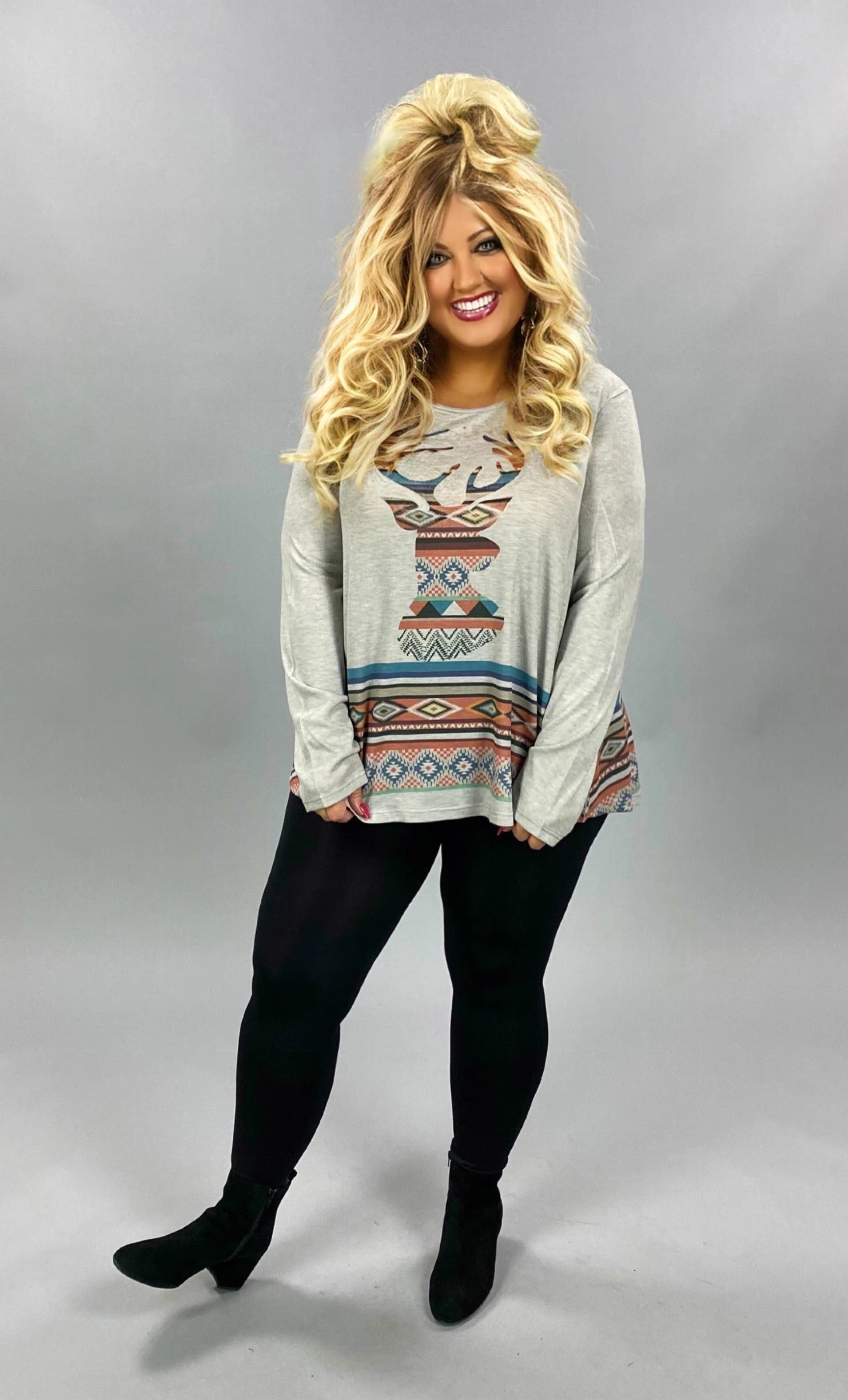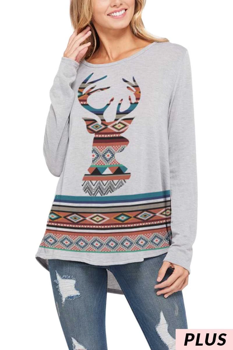 15 GT-O {Deer Season} Aztec Deer Head Top PLUS SIZE XL 2X 3X