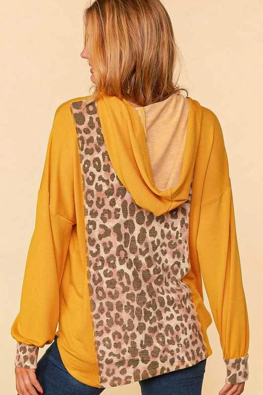 15 HD {Feeling Wild & Free} Mustard Leopard Print Hoodie PLUS SIZE XL 2X 3X