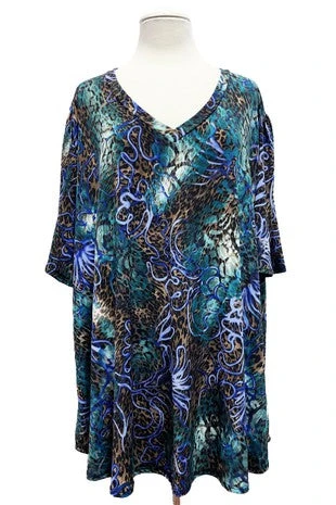 16 PSS {Staying In My Lane} Teal Leopard Royal Blue Floral Top EXTENDED PLUS SIZE 3X 4X 5X