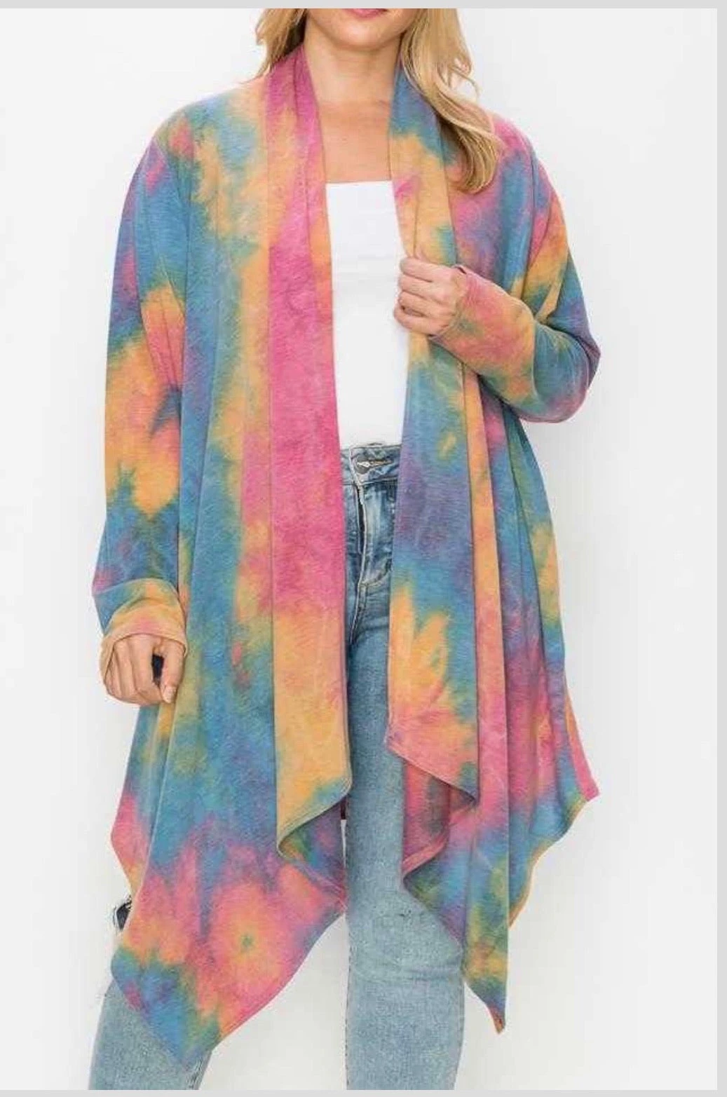 17 OT-C {Grooving On Fashion} Multi-Color Tie Dye Cardigan PLUS SIZE 1X 2X 3X