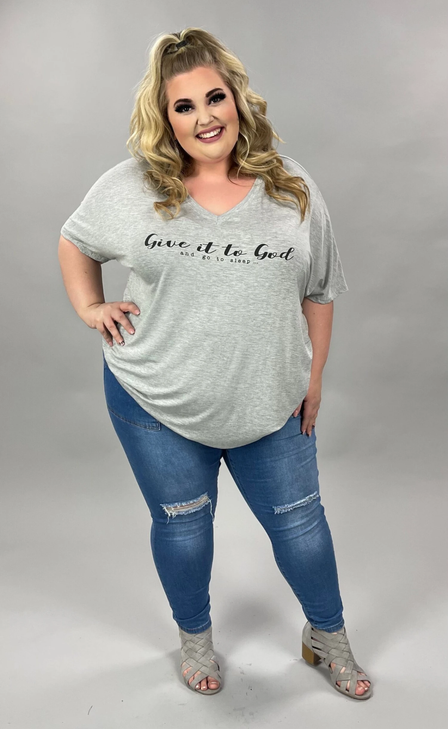 18 GT-B {Give It To God} SALE!! Heather Grey V-Neck Graphic Tee PLUS SIZE 1X 2X 3X
