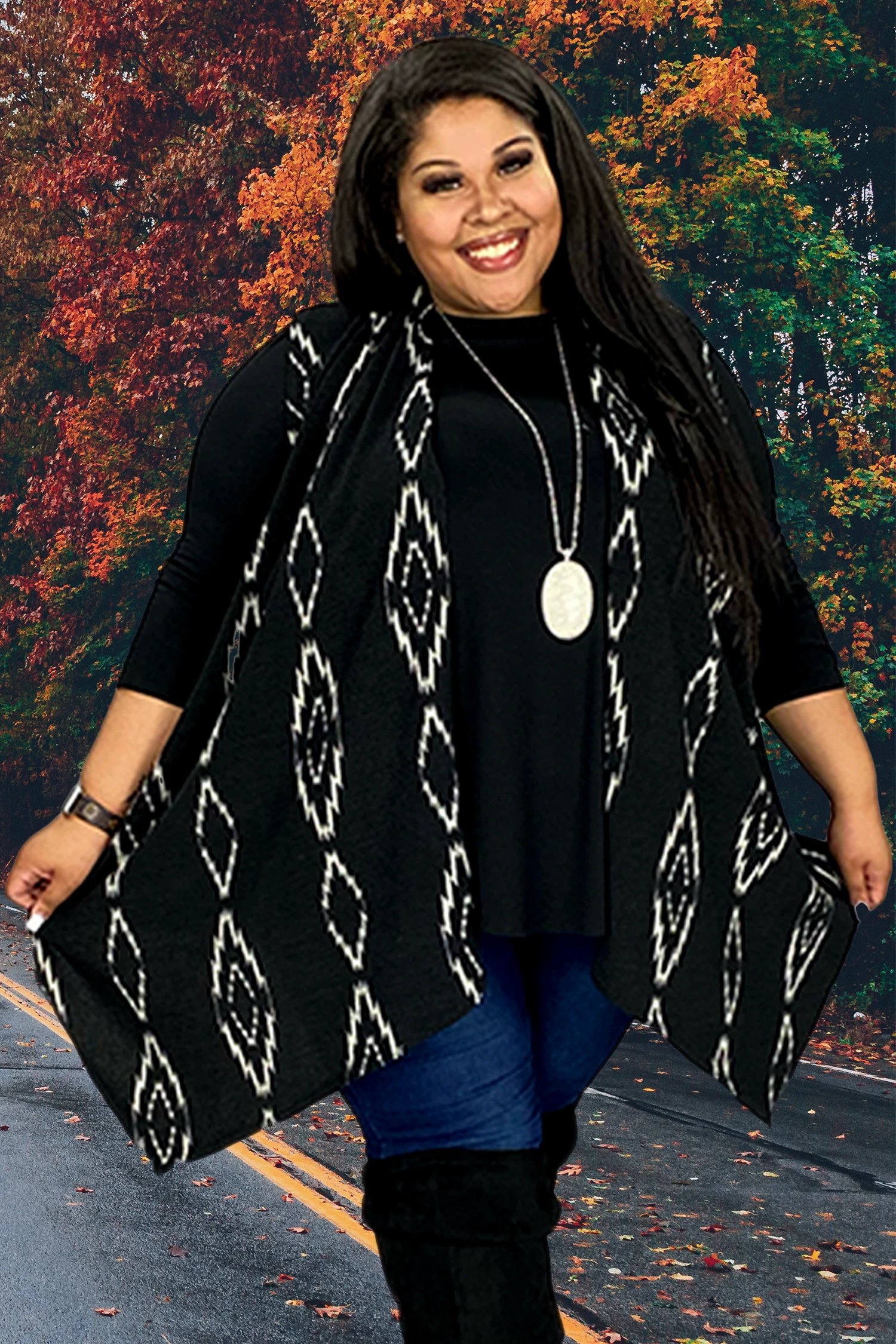 19 OT-J {By Your Side} Black Aztec Print Vest SALE!!! PLUS SIZE 1X 2X 3X