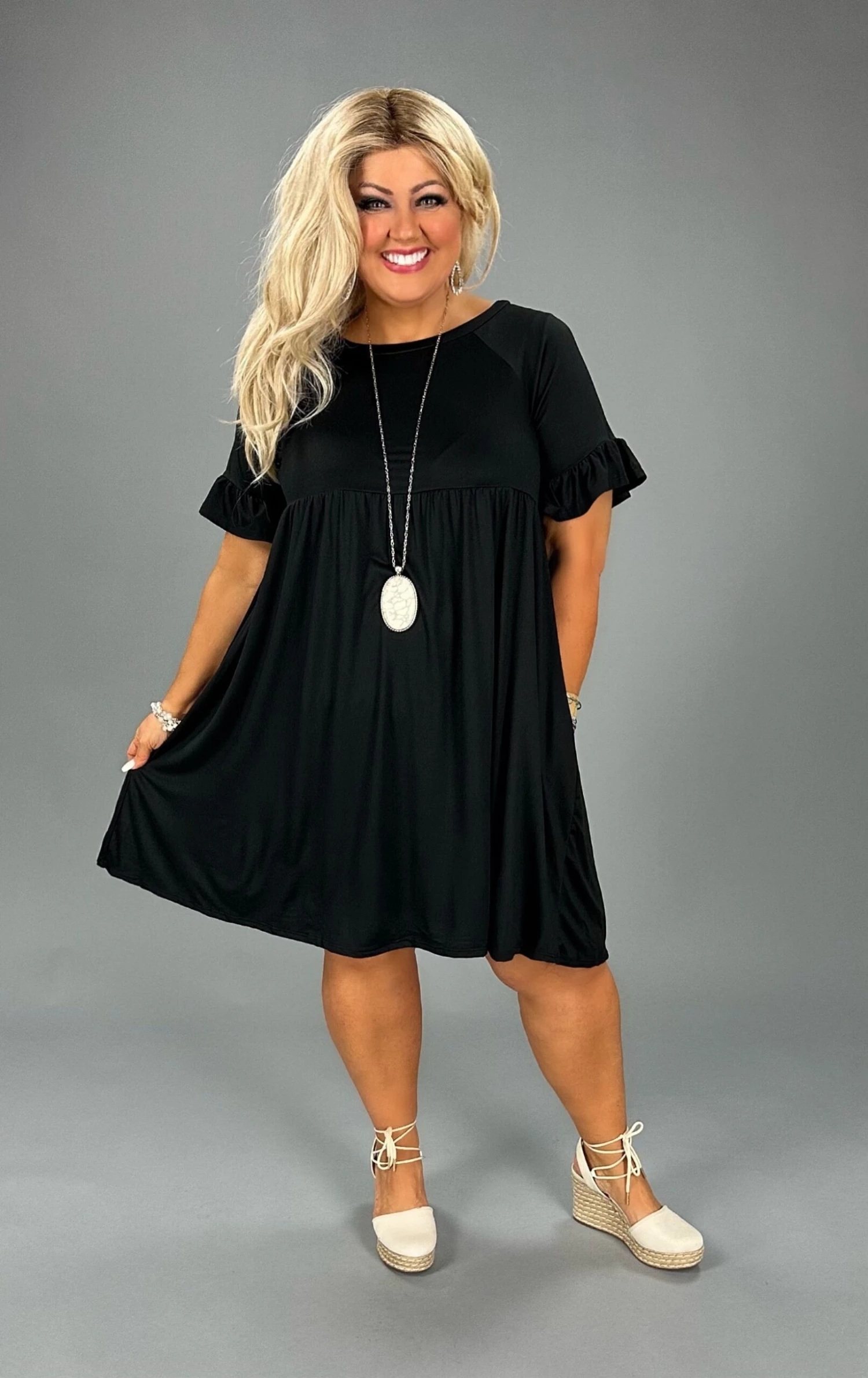 19 SSS-I {My Own Time} Black Babydoll Ruffle Sleeve Dress PLUS SIZE 1X 2X 3X