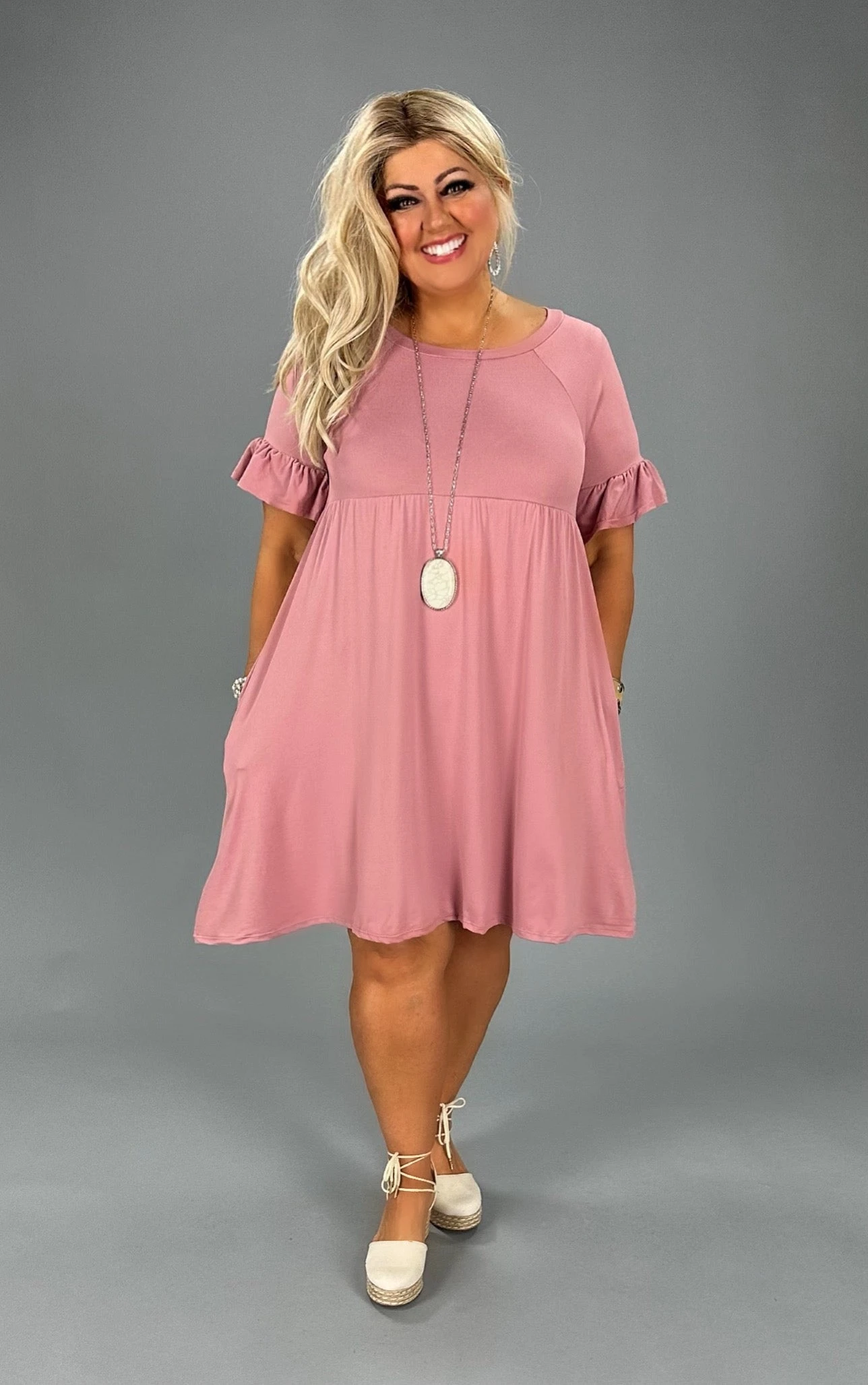 20 SSS-K {My Own Time} Mauve Babydoll Ruffle Sleeve Dress PLUS SIZE 1X 2X 3X
