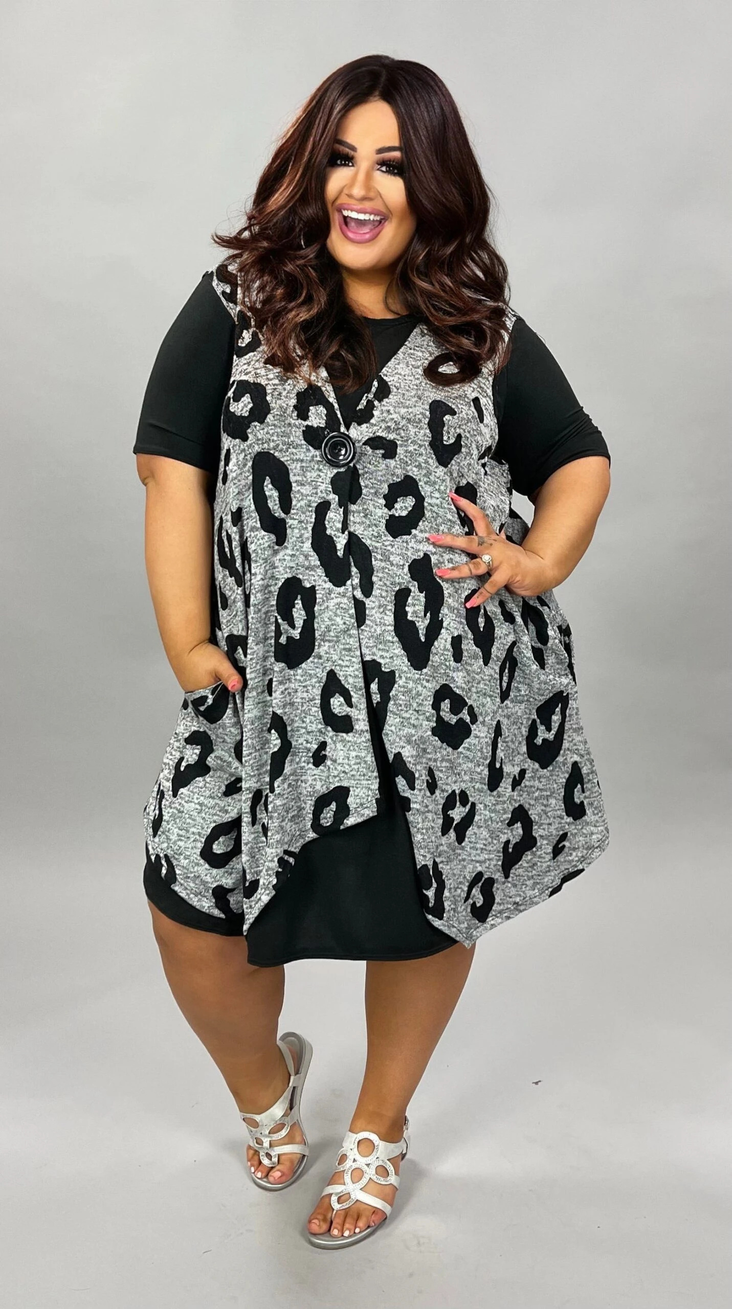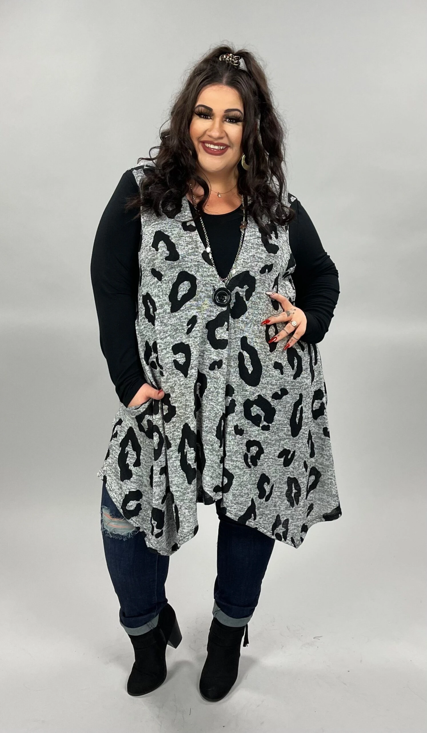 21 OR 32 OT-B {Vested In You} Grey Animal Print Vest CURVY BRAND!!