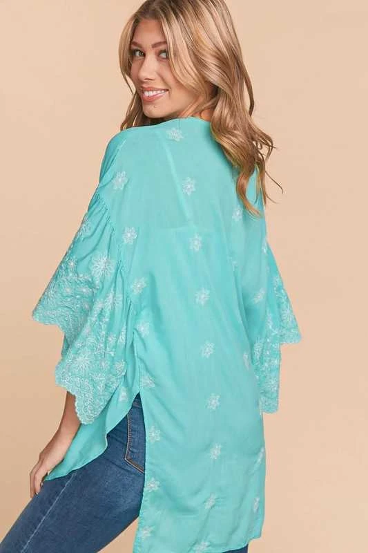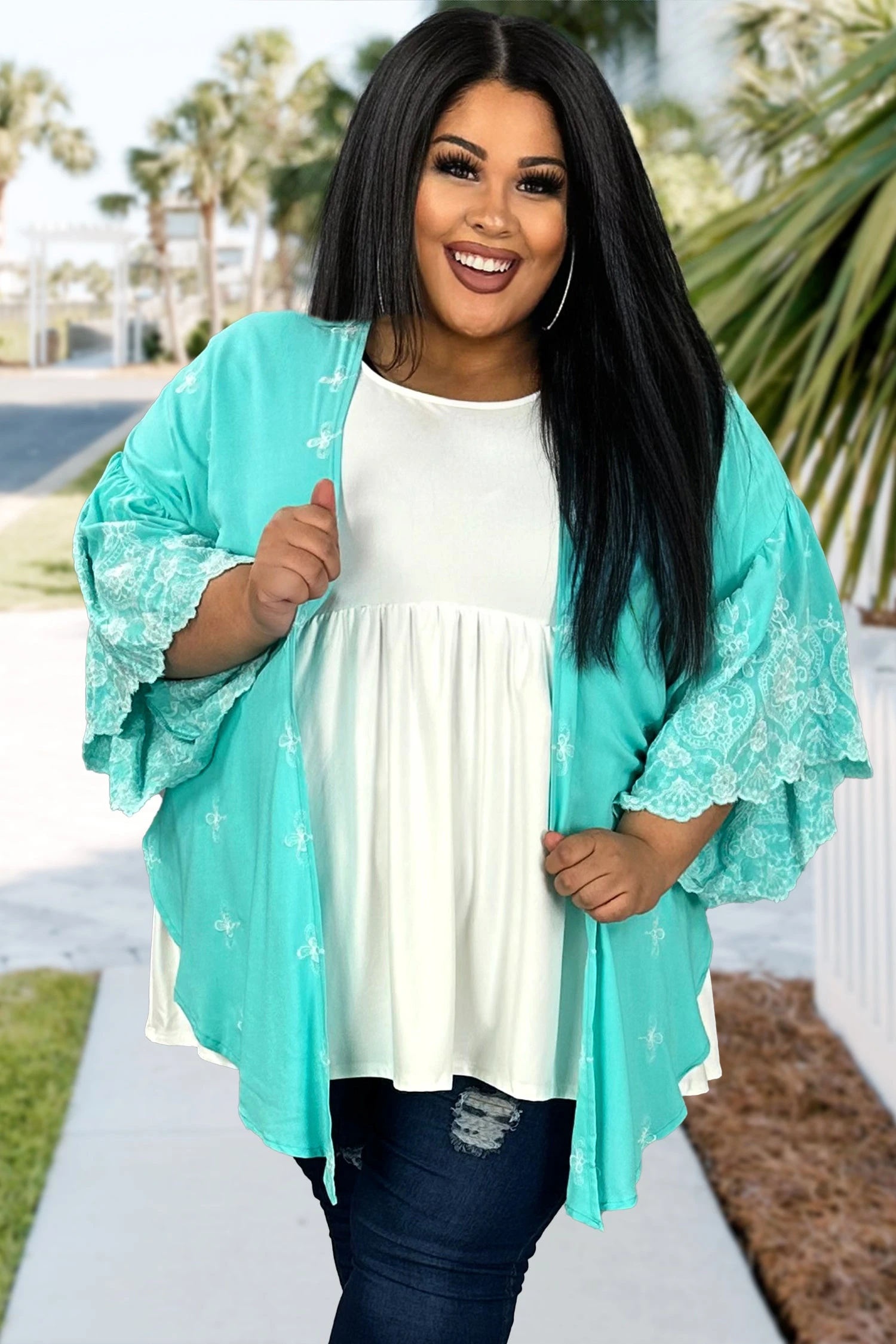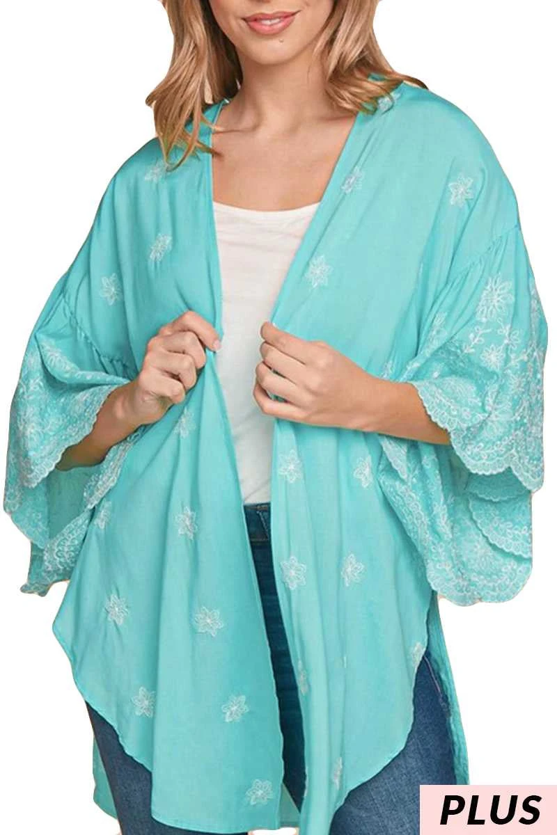 21 OT-R {Peaceful And Pretty} Mint/White Embroidery Kimono PLUS SIZE XL 2X 3X