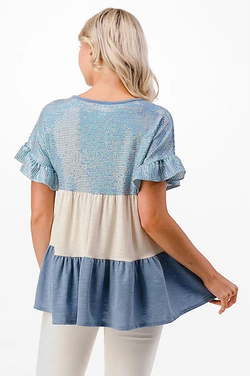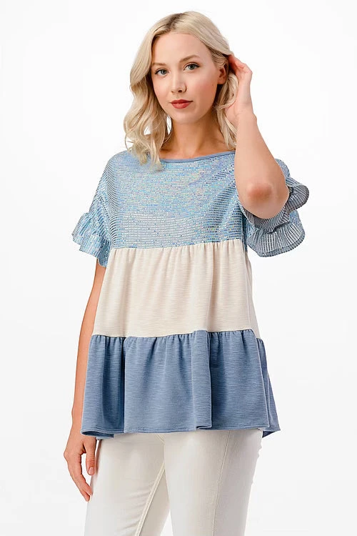 22 CP-C {Show Your Sparkle} Blue Sequin Tiered Top SALE!!!! PLUS SIZE 1X 2X 3X