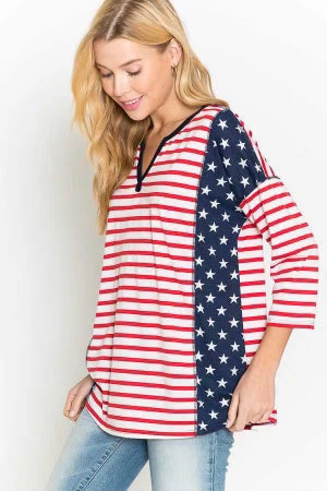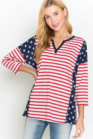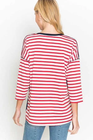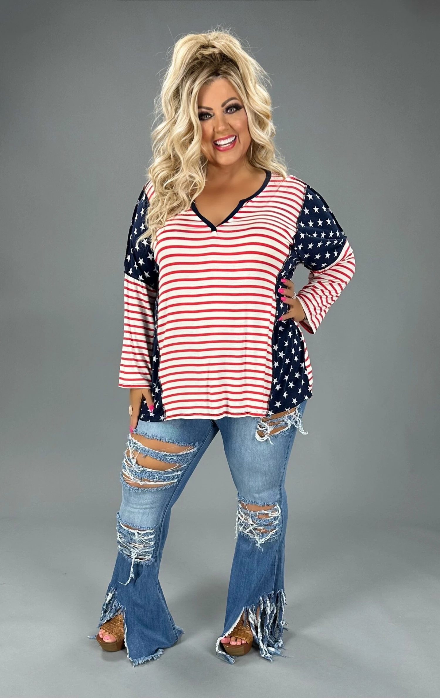 22 CP-D {Sweet America} Red White Blue Striped Top PLUS SIZE 1X 2X 3X