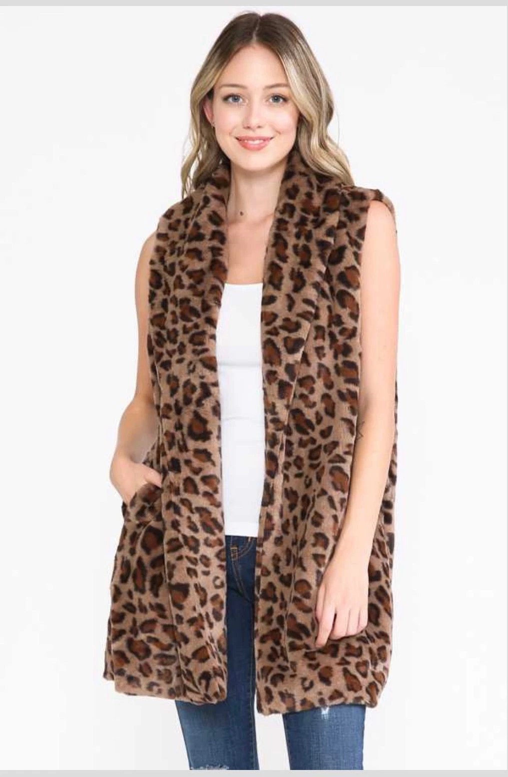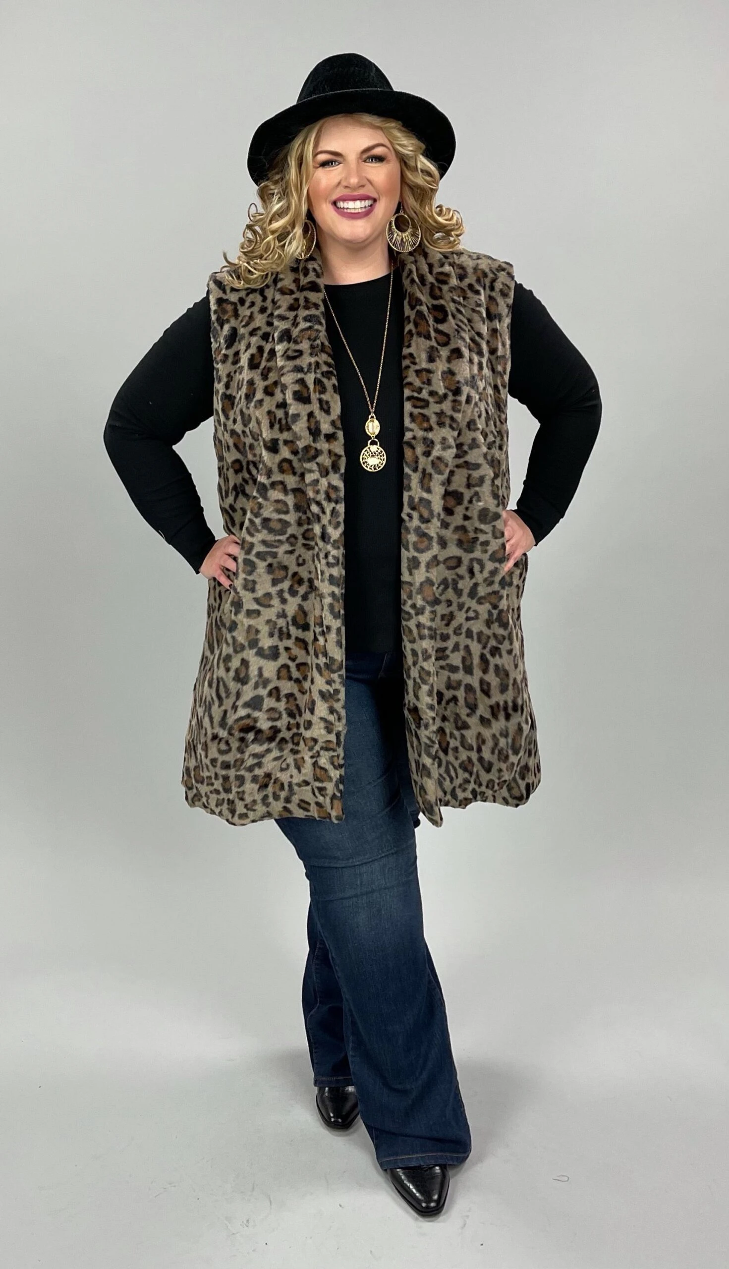 22 OR 35 OT-F {Money Moves} Mocha Animal Print Lined Vest PLUS SIZE 1X 2X 3X