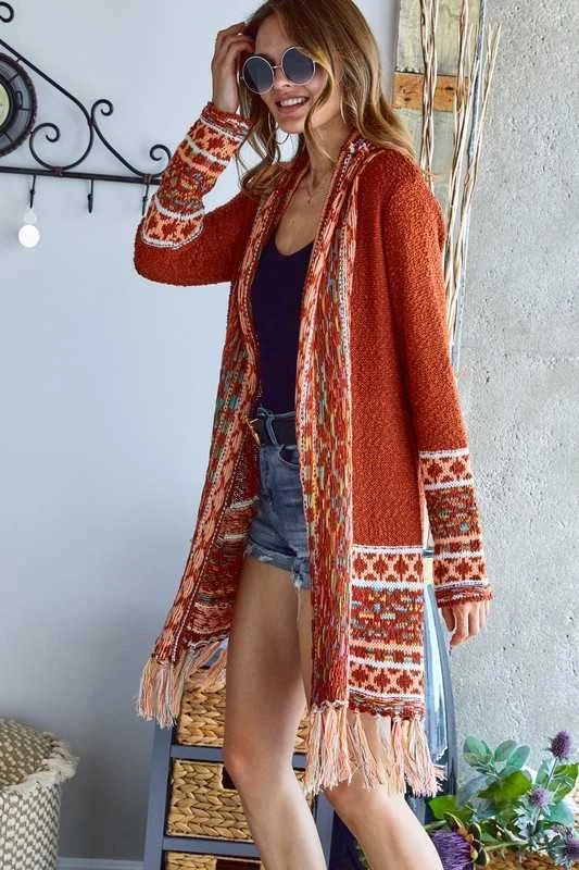 22 OR 35 OT-N {Whole Package} Rust/Tribal Print Cardigan PLUS SIZE 1X/2X 2X/3X