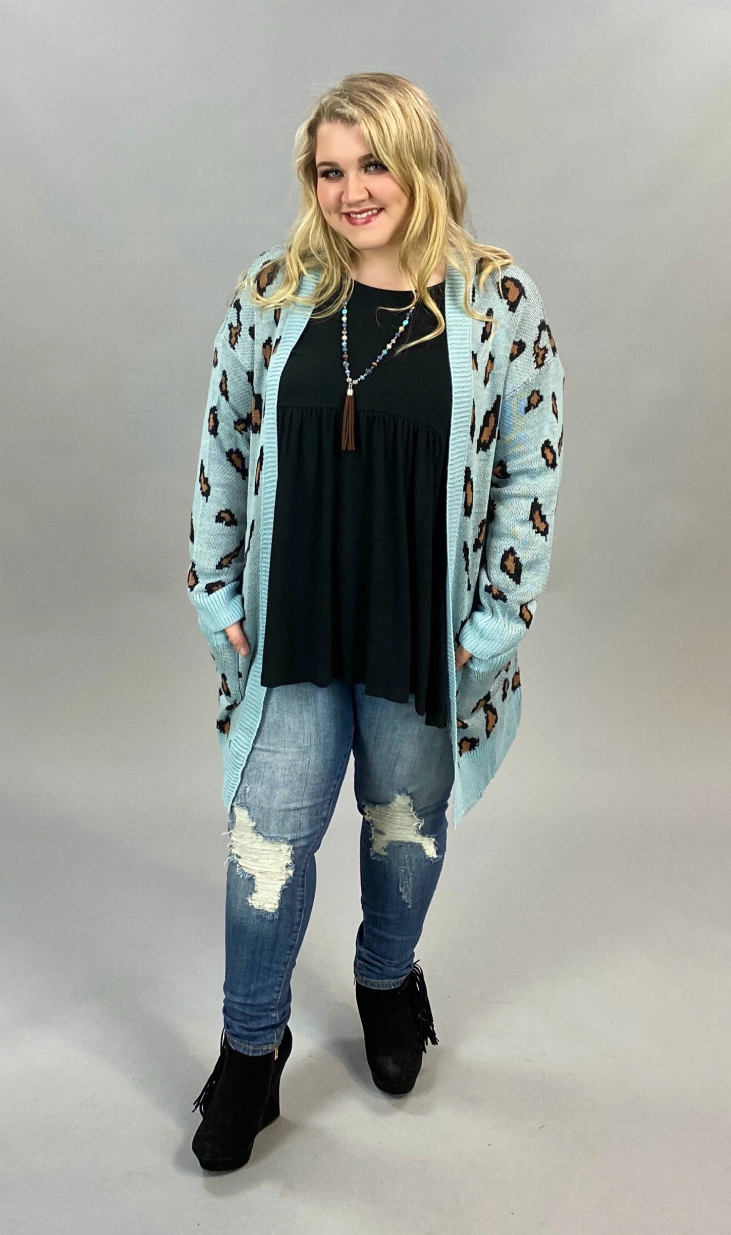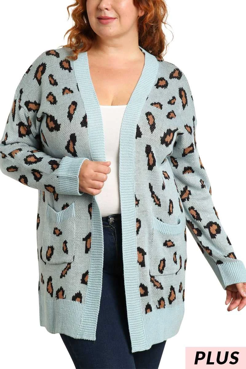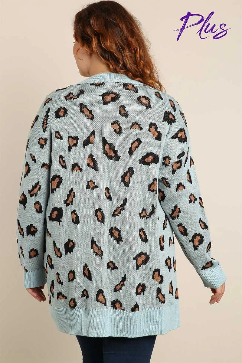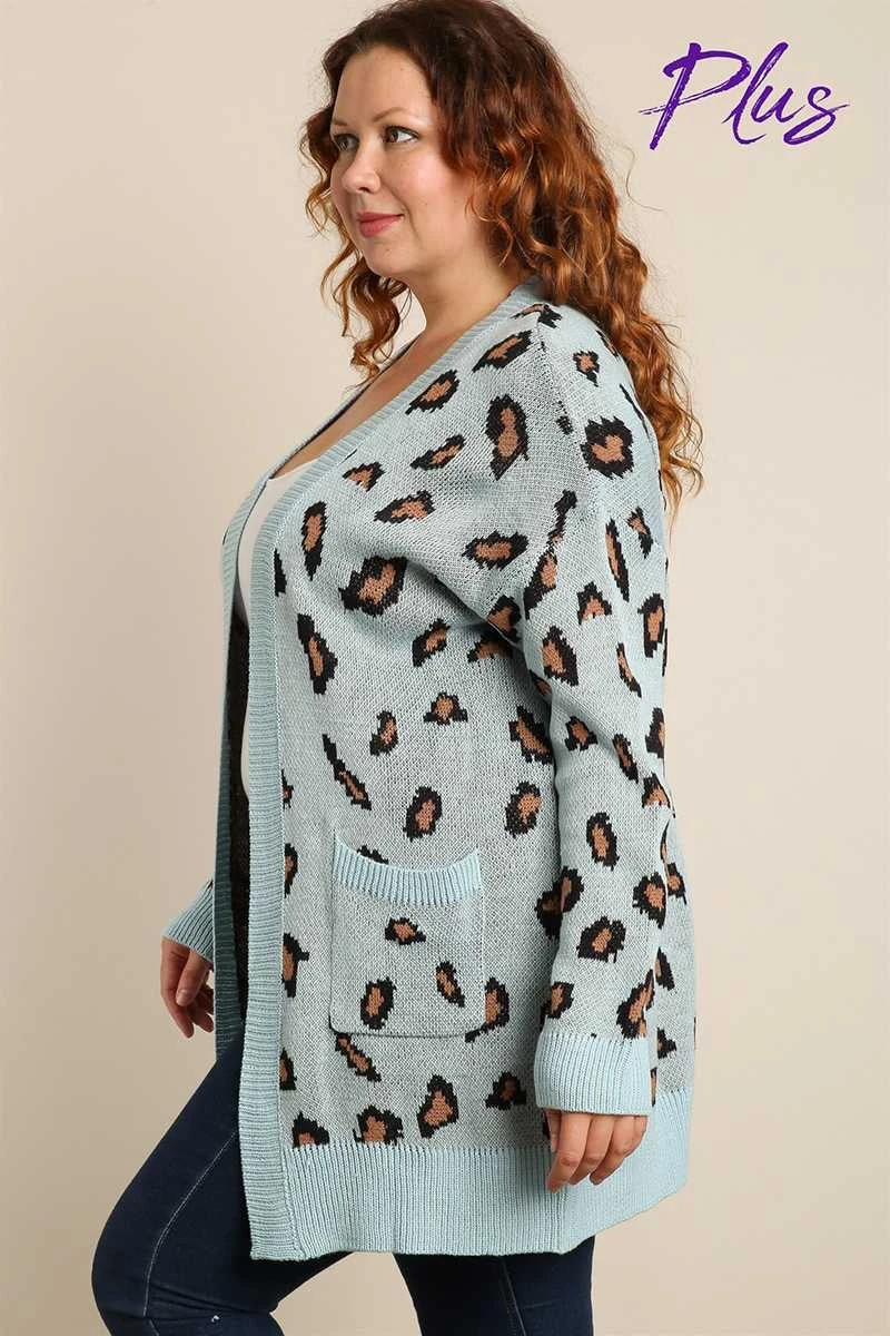 22 OT-J {Being My Best} Blue Mocha Animal Cardigan PLUS SIZE XL 2X 3X