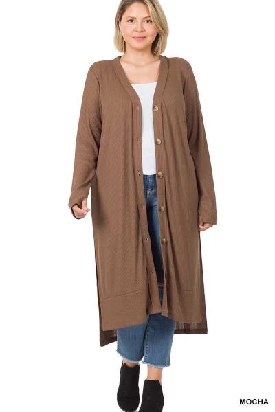 22 OT-K {Close To You} Mocha Ribbed Button Up Duster SALE!!! PLUS SIZE 1X 2X 3X
