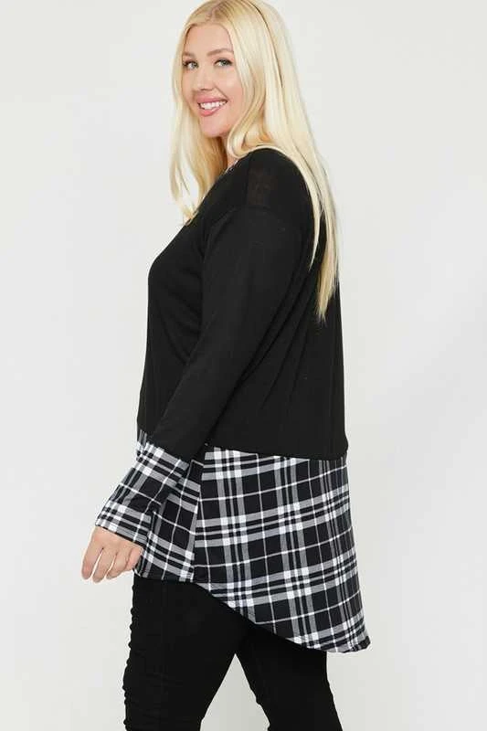 23 CP-L {Cut It Short} Black With White Plaid Tunic SALE!! PLUS SIZE XL 2X 3X