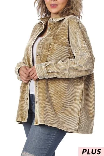 23 OT-Y {Corduroy Cutie} Khaki Corduroy Shacket PLUS SIZE 1X 2X 3X