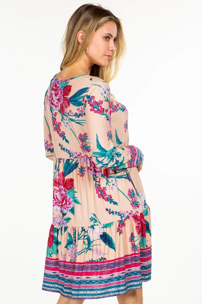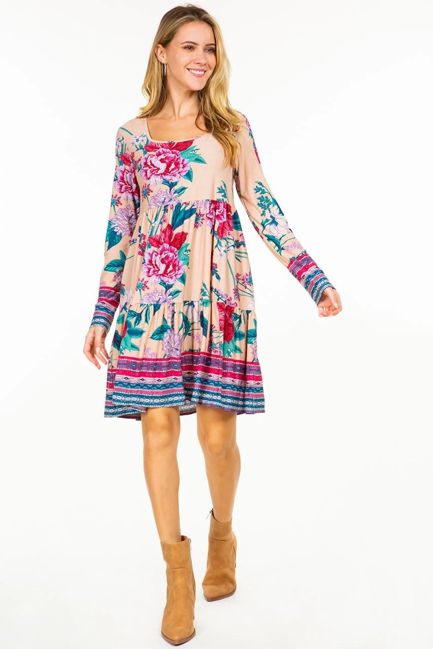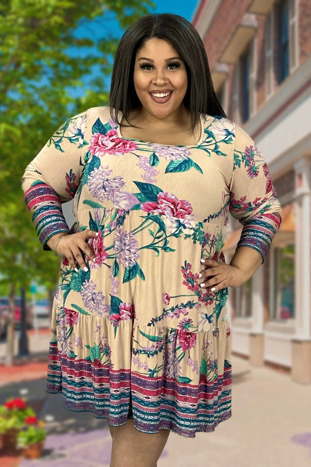 25 PLS-B {Be The Best You} Taupe Floral Tiered Dress PLUS SIZE 1X 2X 3X