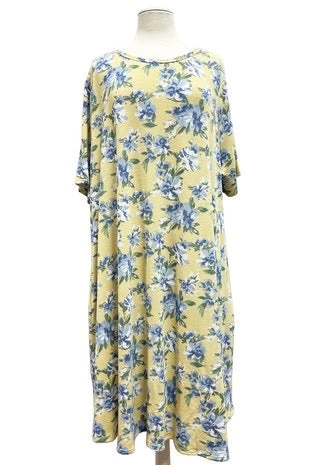 25 PSS-M {Eyes On The Prize} Yellow Floral Dress W/Pockets EXTENDED PLUS SIZE 4X 5X 6X SALE!!