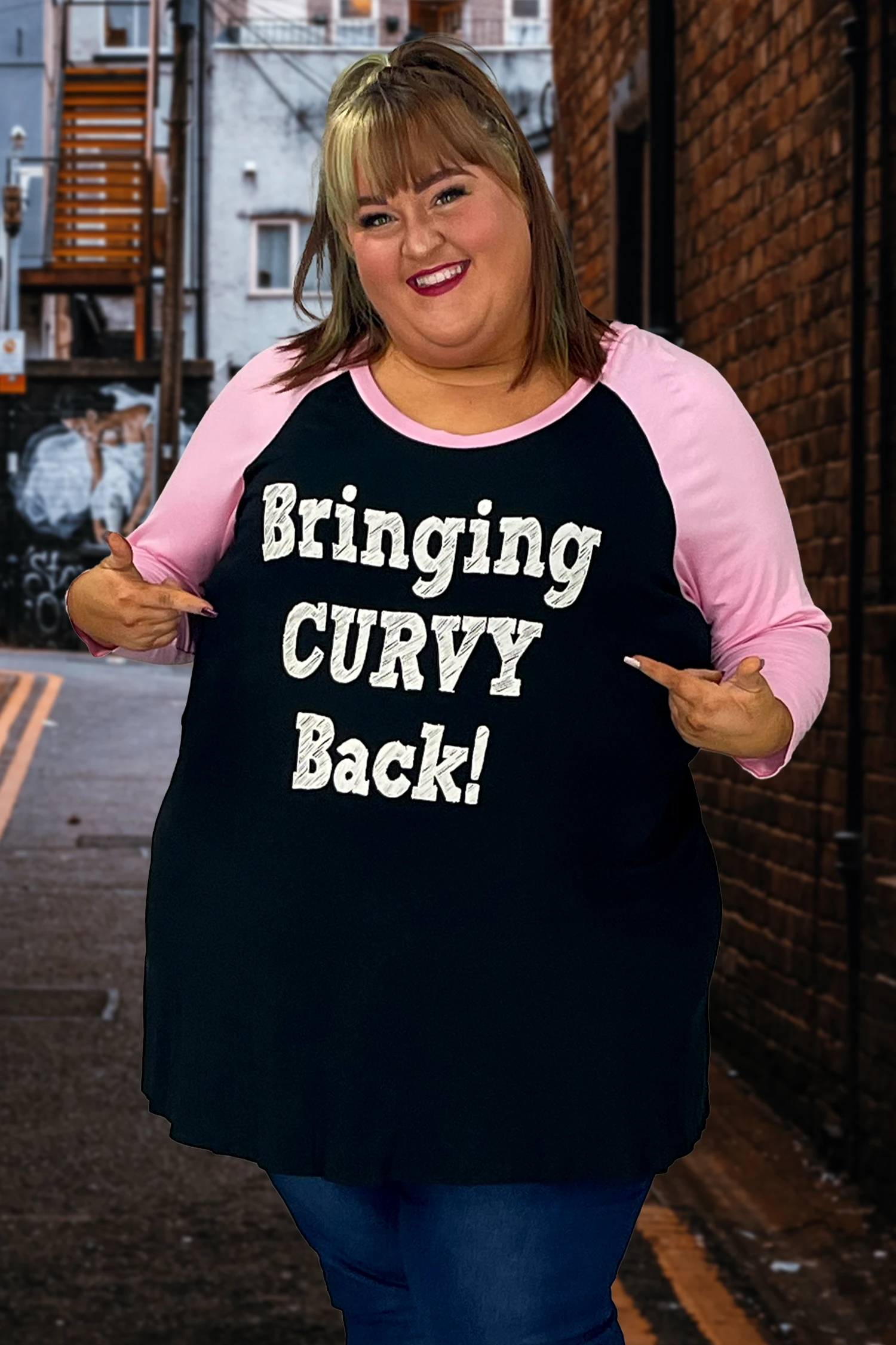 26 GT-B {Curvy Back} SALE!!! Pink/Black Graphic Tee CURVY BRAND!! EXTENDED PLUS SIZE 1X 2X 3X 4X 5X 6X