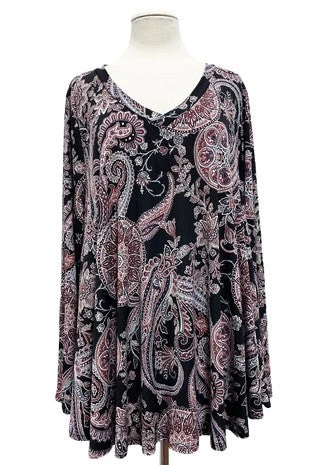 26 PLS {Hope Heals} Black/Mauve Paisley Mandala Print Top PLUS SIZE XL 2X 3X