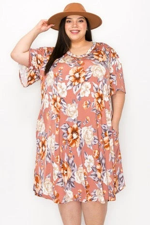 26 PSS-T {Not Forgotten} Mauve/Rust Floral V-Neck Dress EXTENDED PLUS SIZE 3X 4X 5X