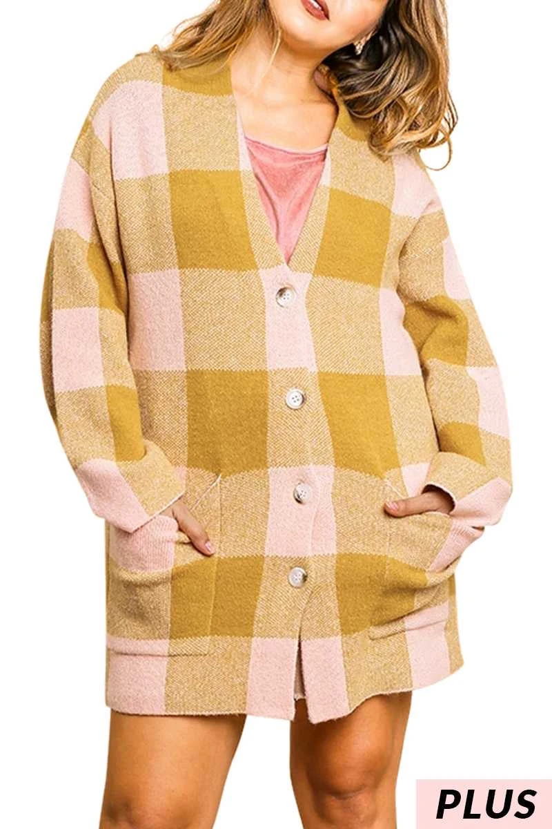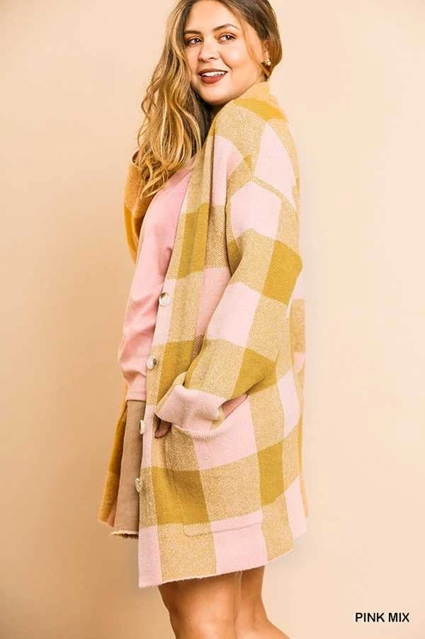 27 OT-A {Feel The Warmth} UMGEE Pink Mix Plaid Sweater PLUS SIZE XL 1X 2X Shacket