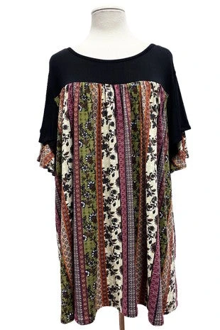 28 CP {Style A La Mode} Black Striped Fall Print Top EXTENDED PLUS SIZE 3X 4X 5X 6X