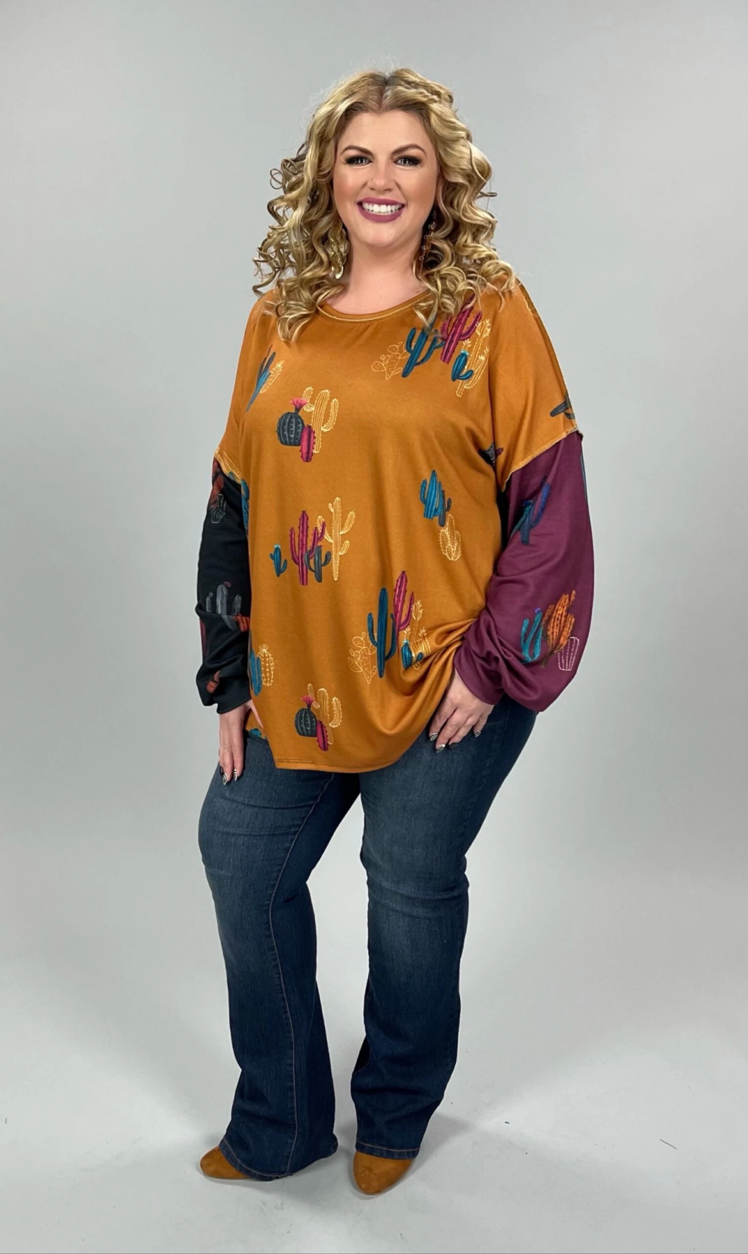 28 OR 37 PLS-A {Cactus Fever} Mustard Print Top SALE!! PLUS SIZE 1X 2X 3X