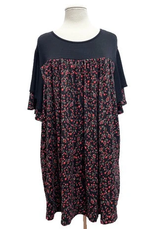 29 CP {Paid My Dues} Black/Red Ditsy Floral Print Top EXTENDED PLUS SIZE 3X 4X 5X