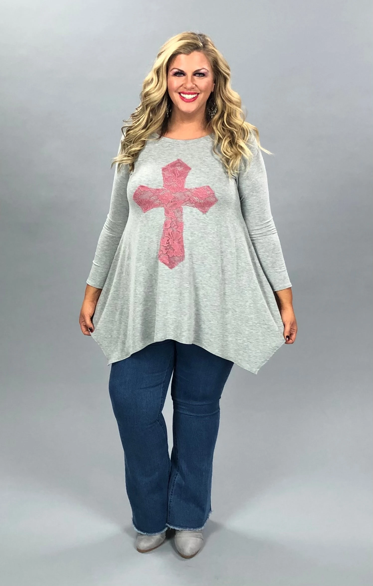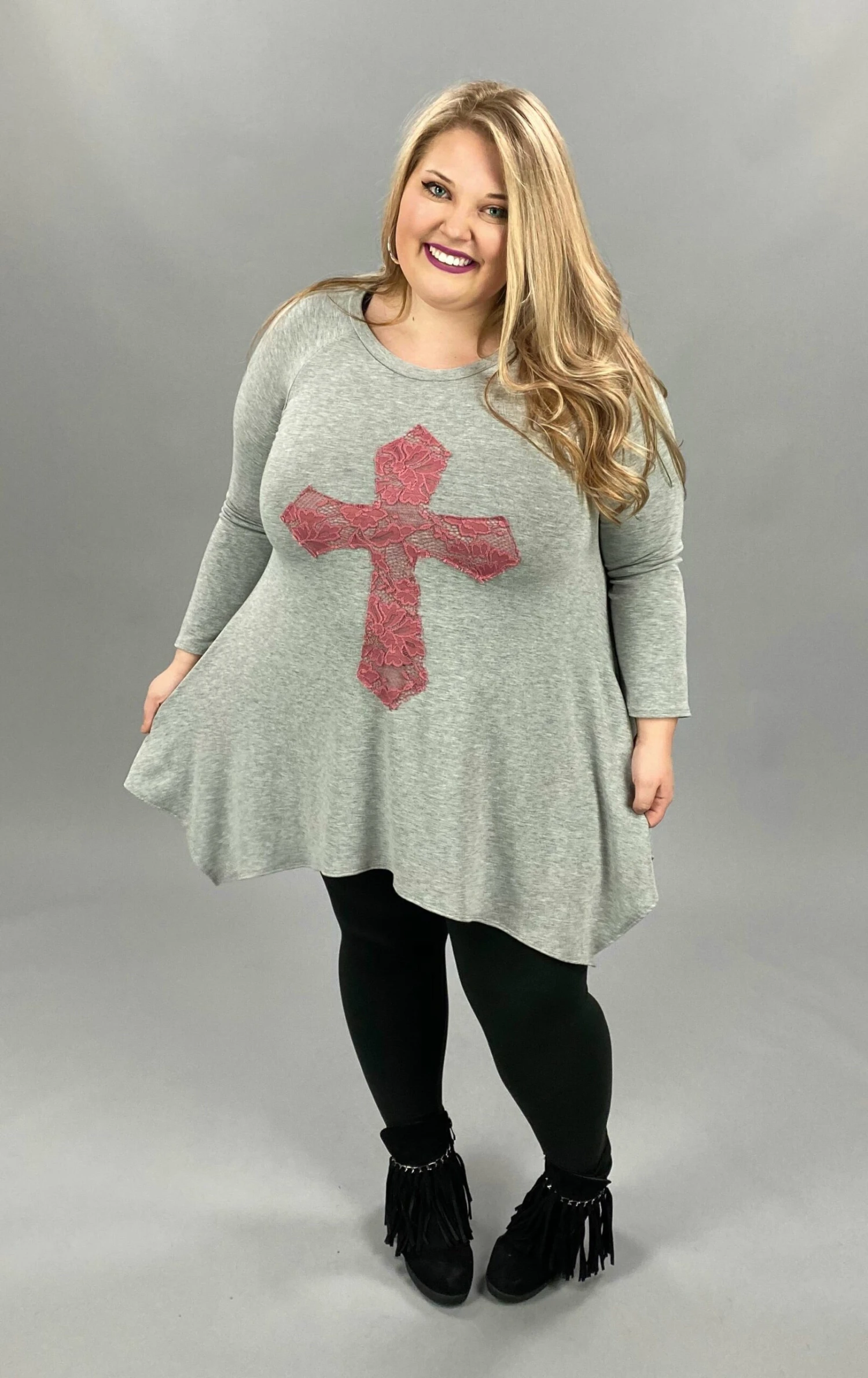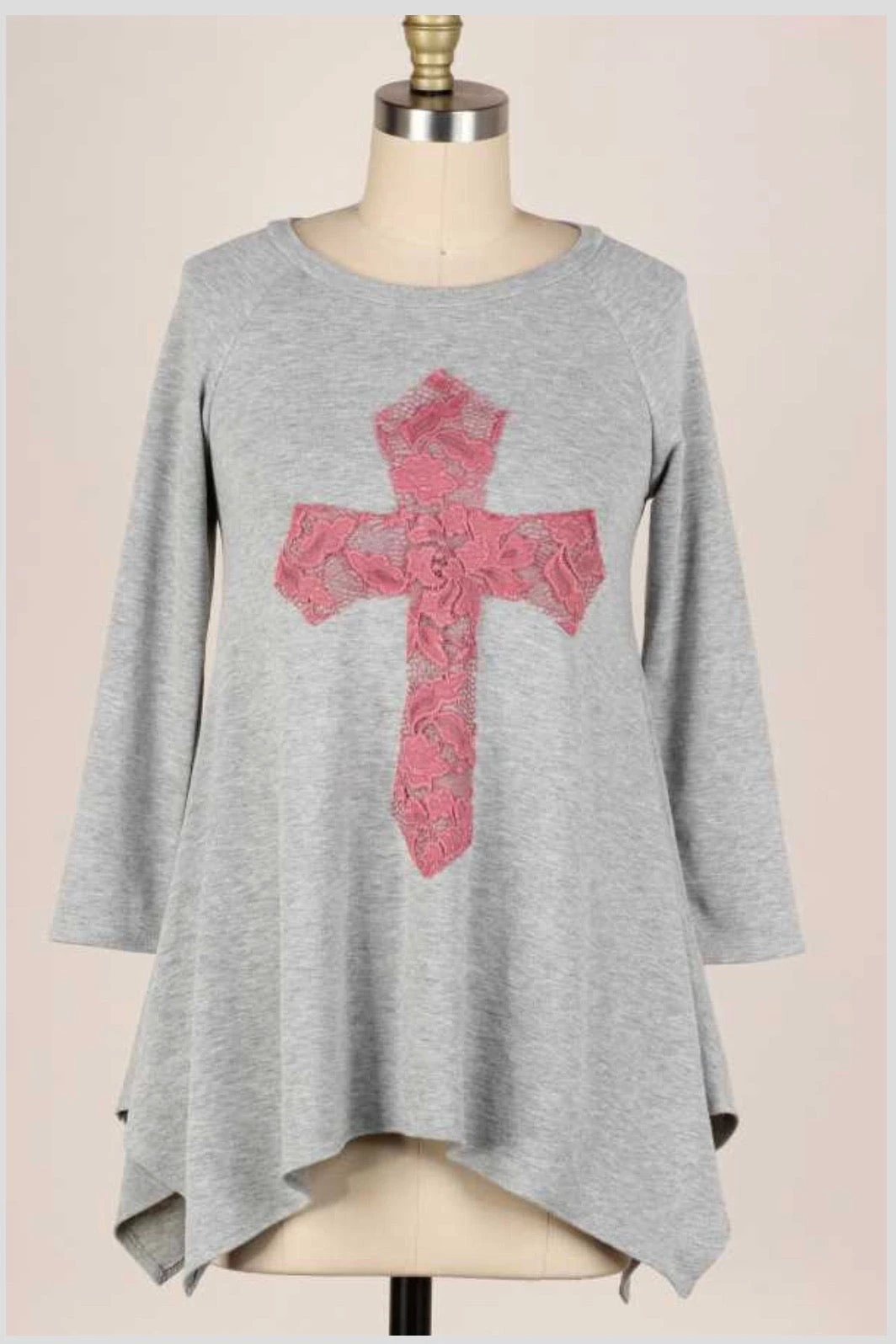 29 GT-C {Don’t Cross Me} Grey Pink Cross Detail Top PLUS SIZE XL 2X 3X