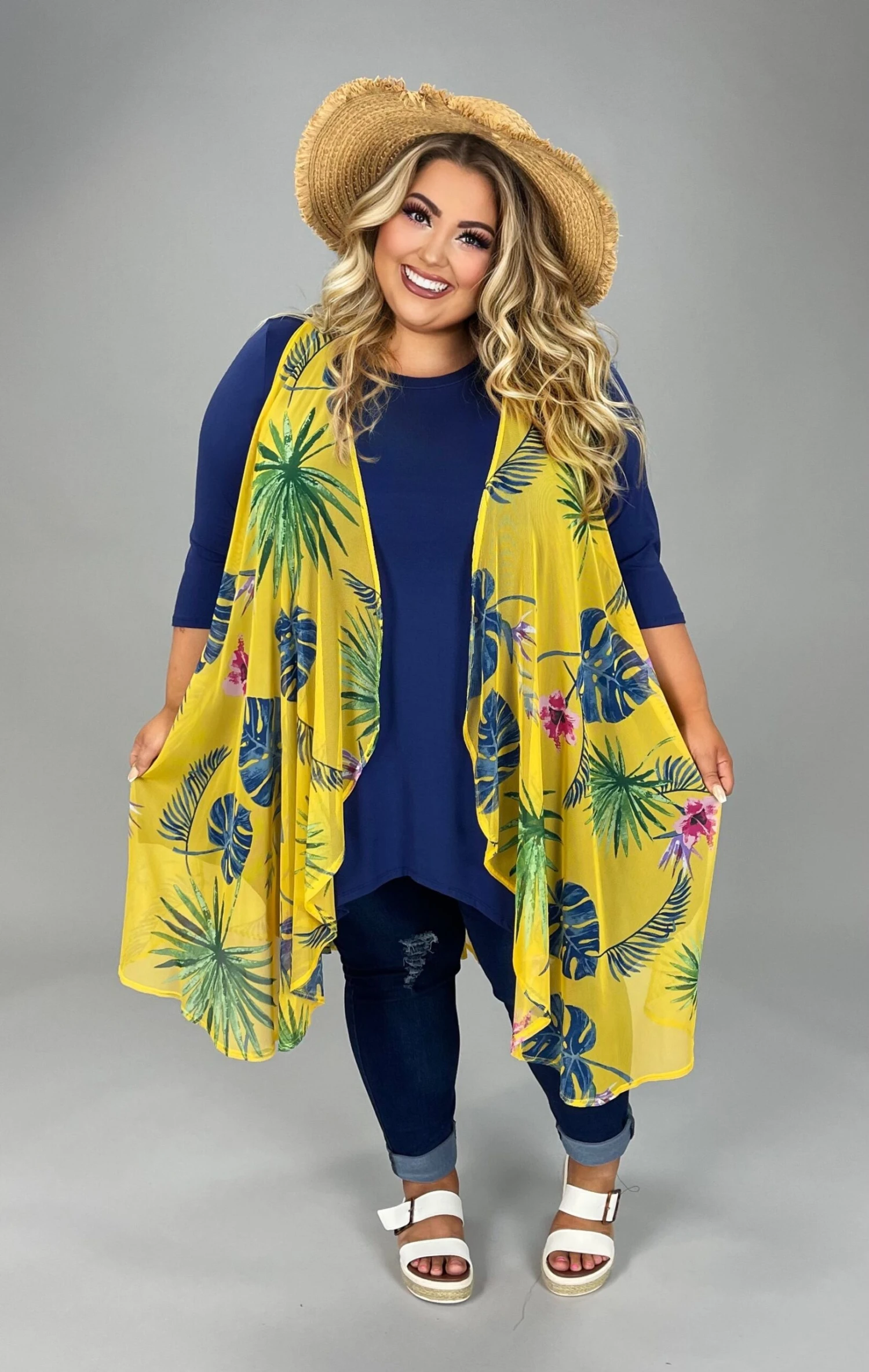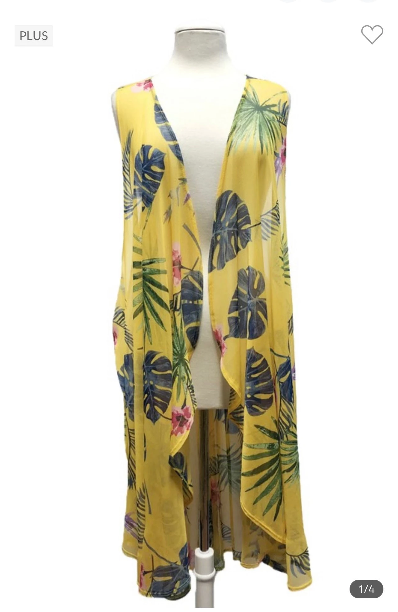 29 OT-A {Palm Figures} Yellow Palm Leaf Vest PLUS SIZE SALE!!!!