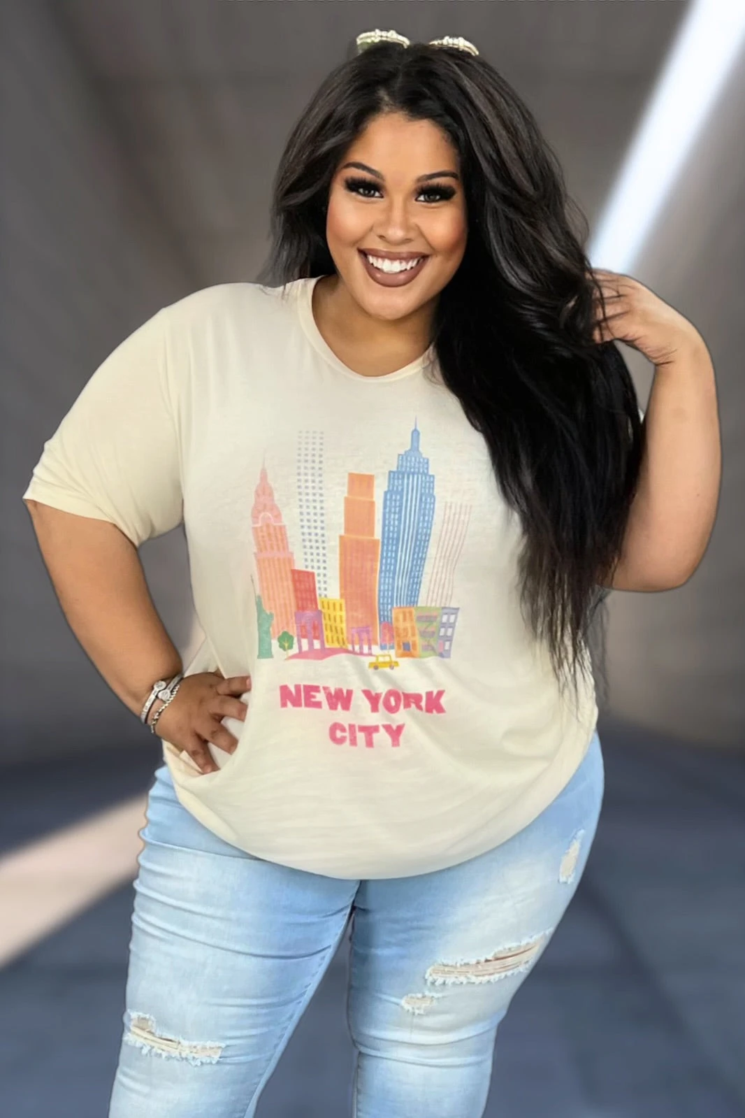 30 GT-D {New York City} Cream Graphic Tee PLUS SIZE 1X 2X 3X