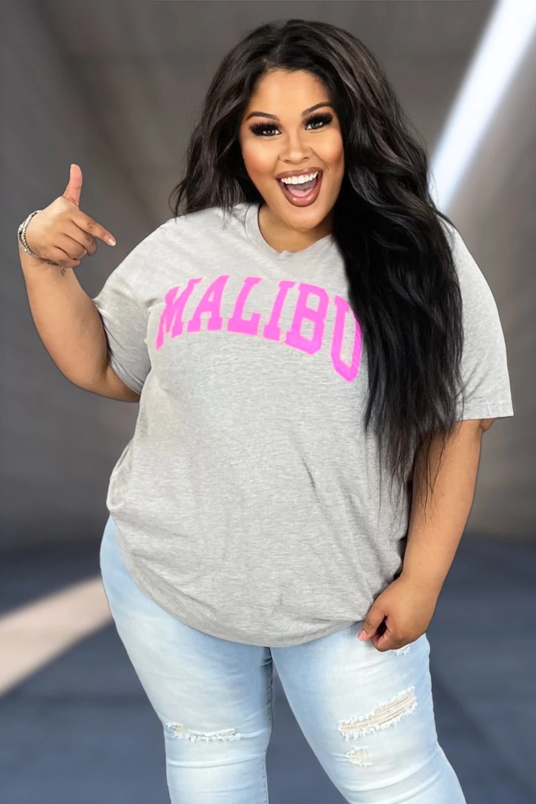 30 GT-G {Malibu} Heather Grey Pink MALIBU Graphic Tee PLUS SIZE 1X 2X 3X