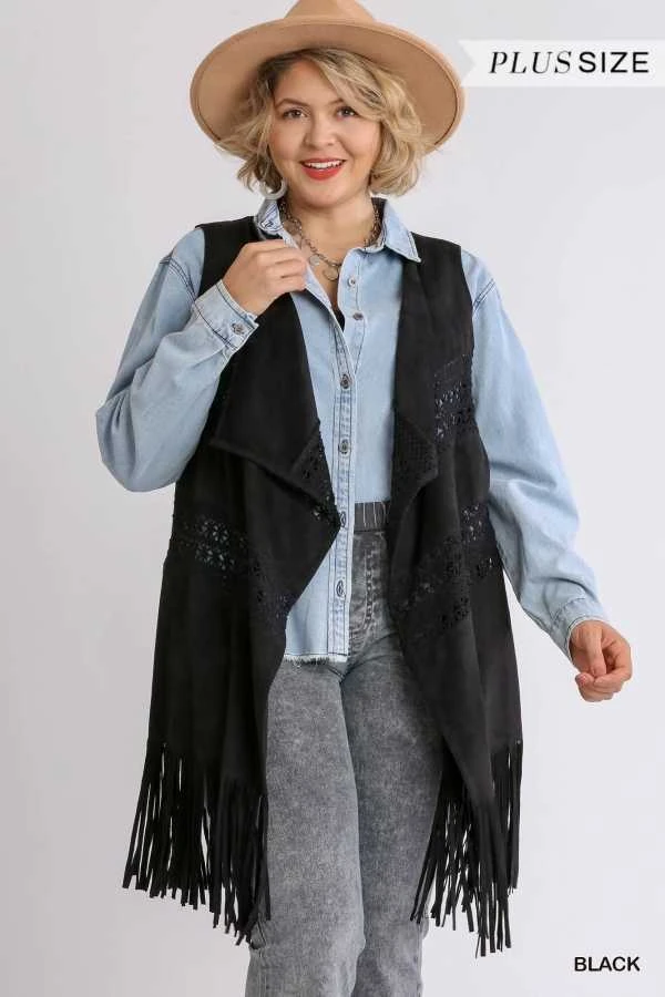 31 OR 56 OT-A {Cool Is Calling} UMGEE Black Vest W/Fringe PLUS SIZE XL 1X 2X