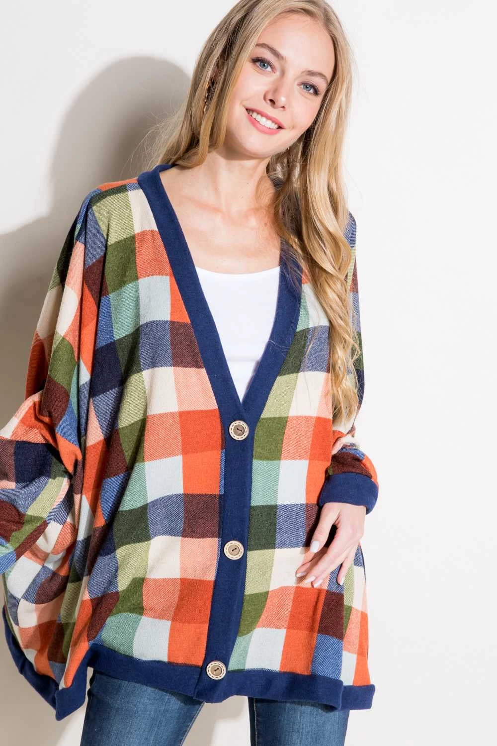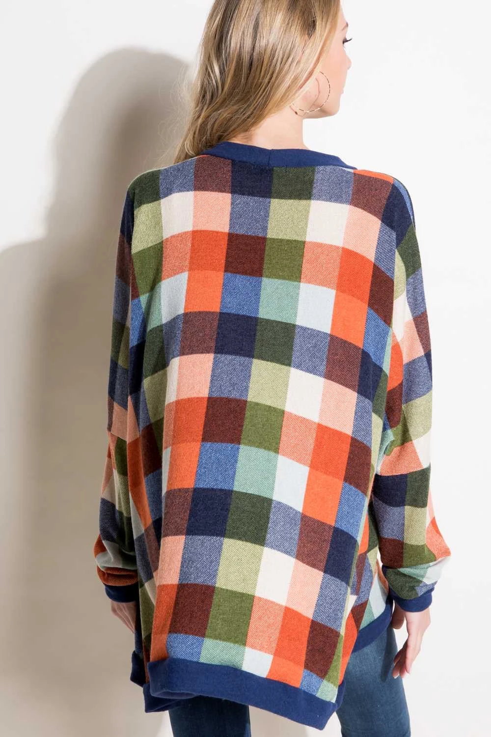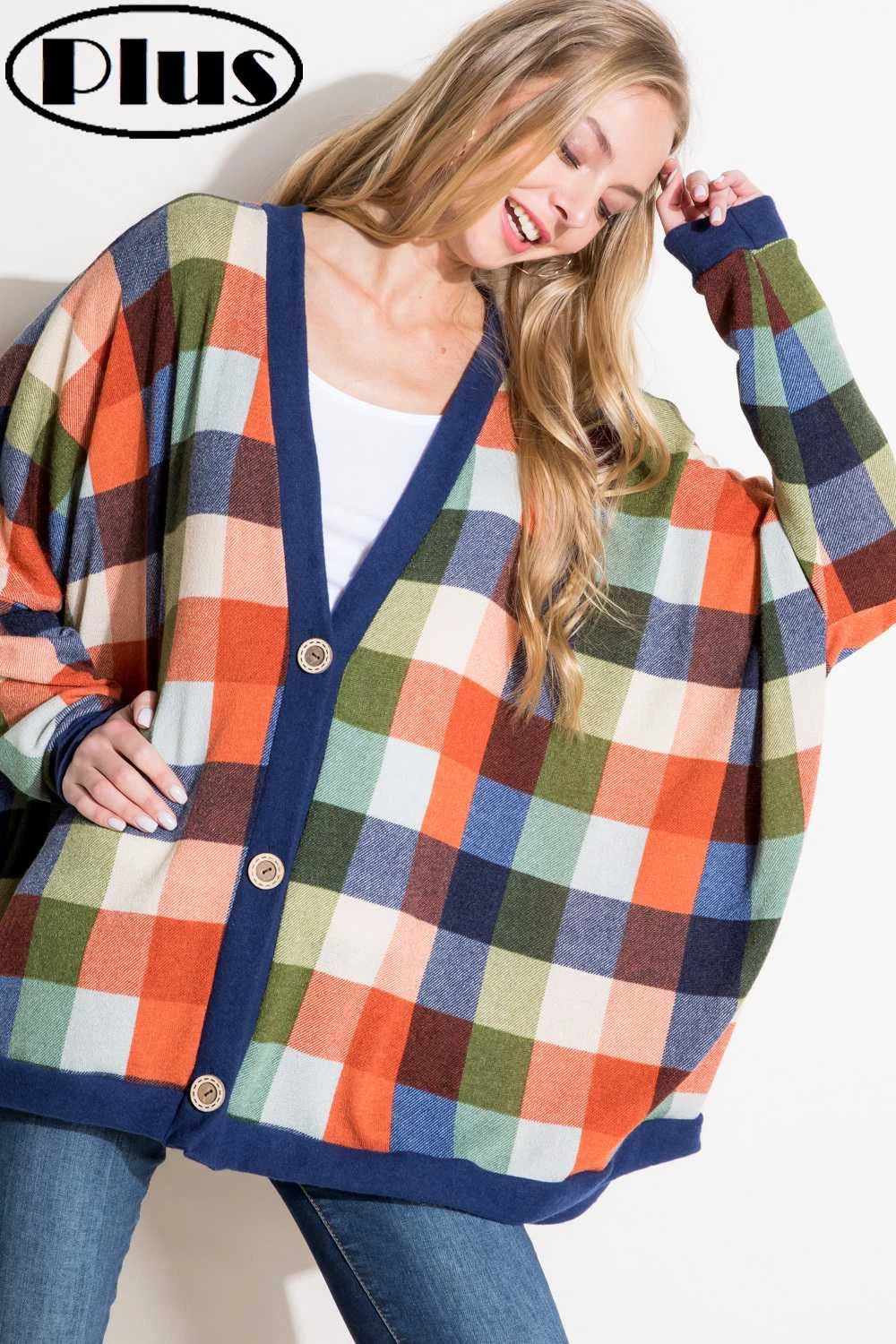 31 OT-D {Check My Vibes} Orange Checkered Cardigan PLUS SIZE 1X 2X 3X
