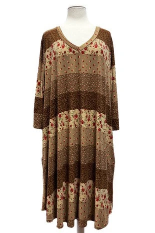 31 PQ {Infatuated With Flowers} Brown/Red Floral V-Neck Dress EXTENDED PLUS SIZE 3X 4X 5X