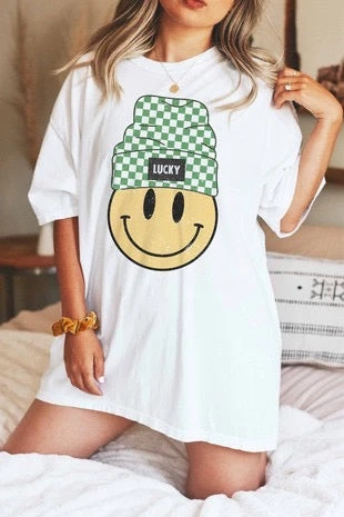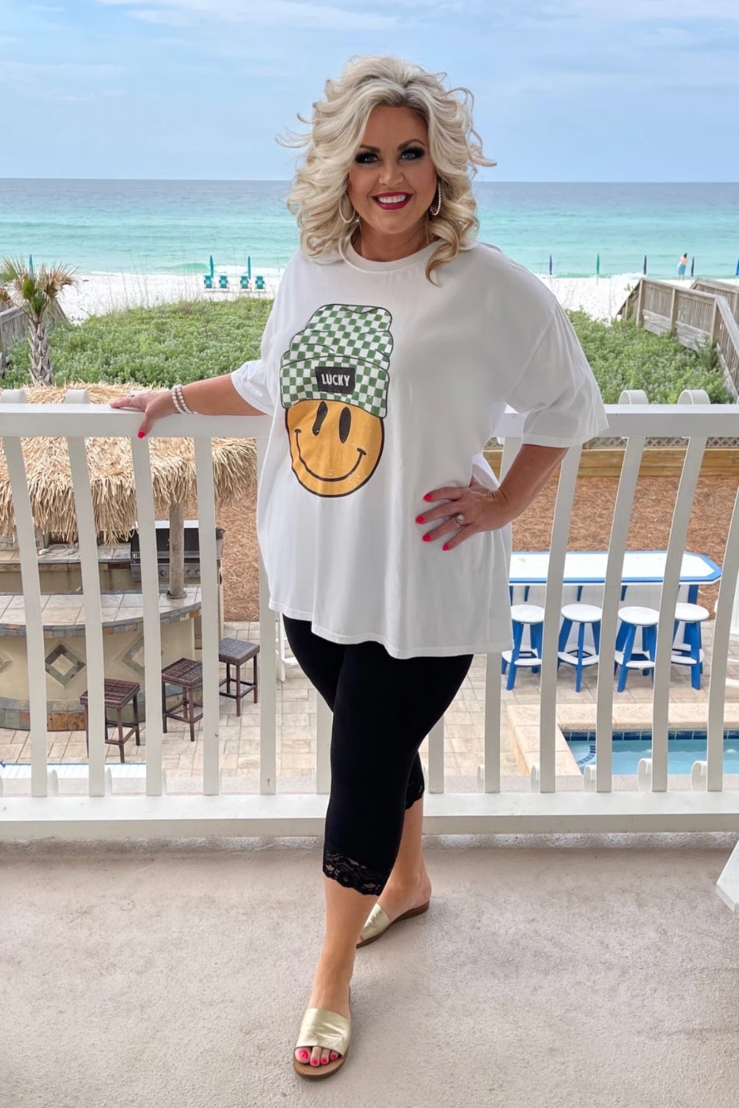 32 GT-B (Lucky Smiley Face) White Graphic Smiley Face PLUS SIZE 1X 2X 3X