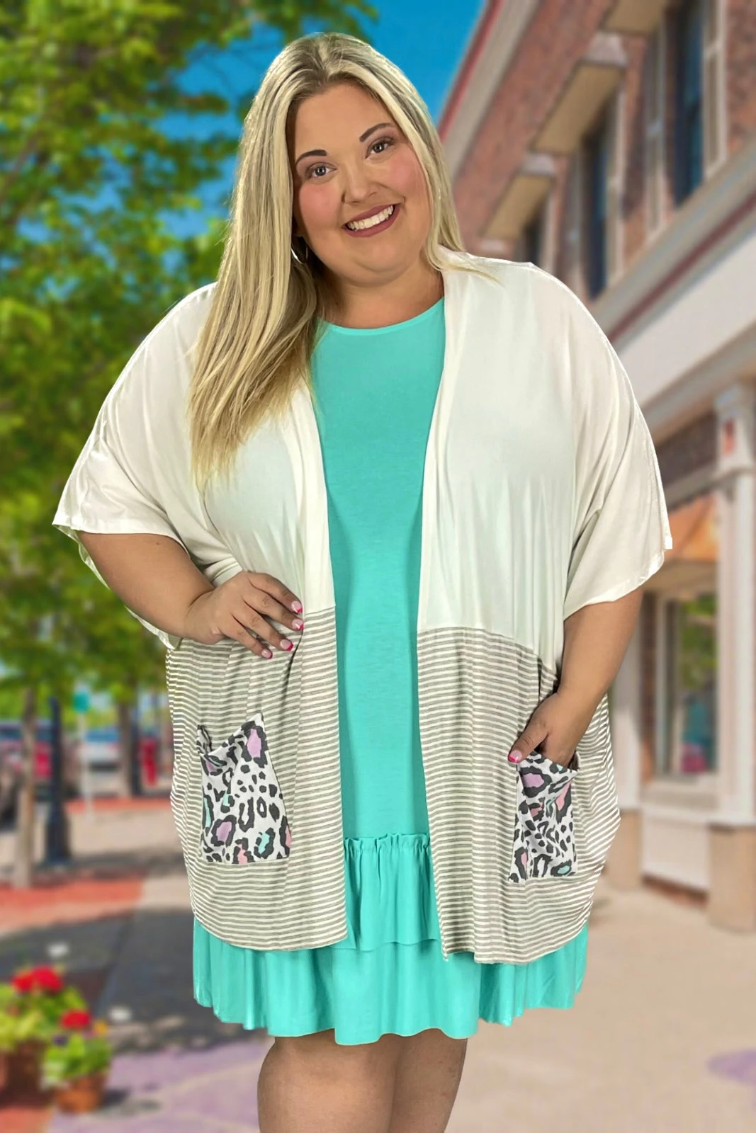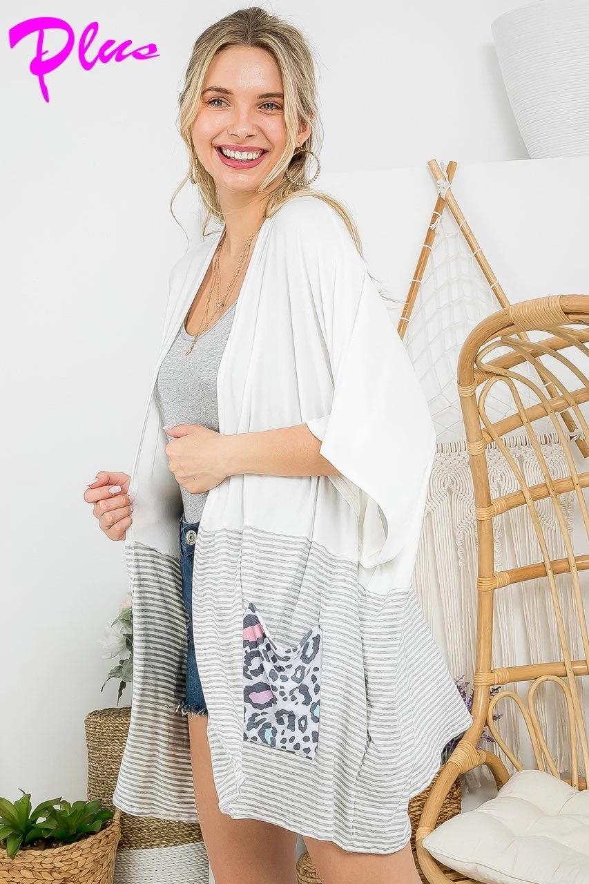 33 OT-E {A Little Wild} SALE!! Cream/H.Grey Stripe Leopard Kimono PLUS SIZE 1X 2X 3X