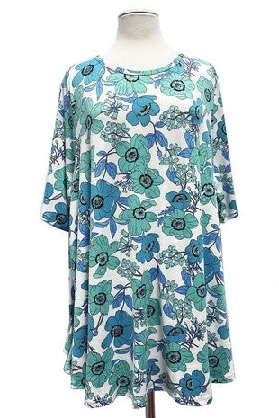 33 PSS {Artfully Done} SALE! Ivory/Mint Floral Tunic EXTENDED PLUS SIZE 4X 5X 6X