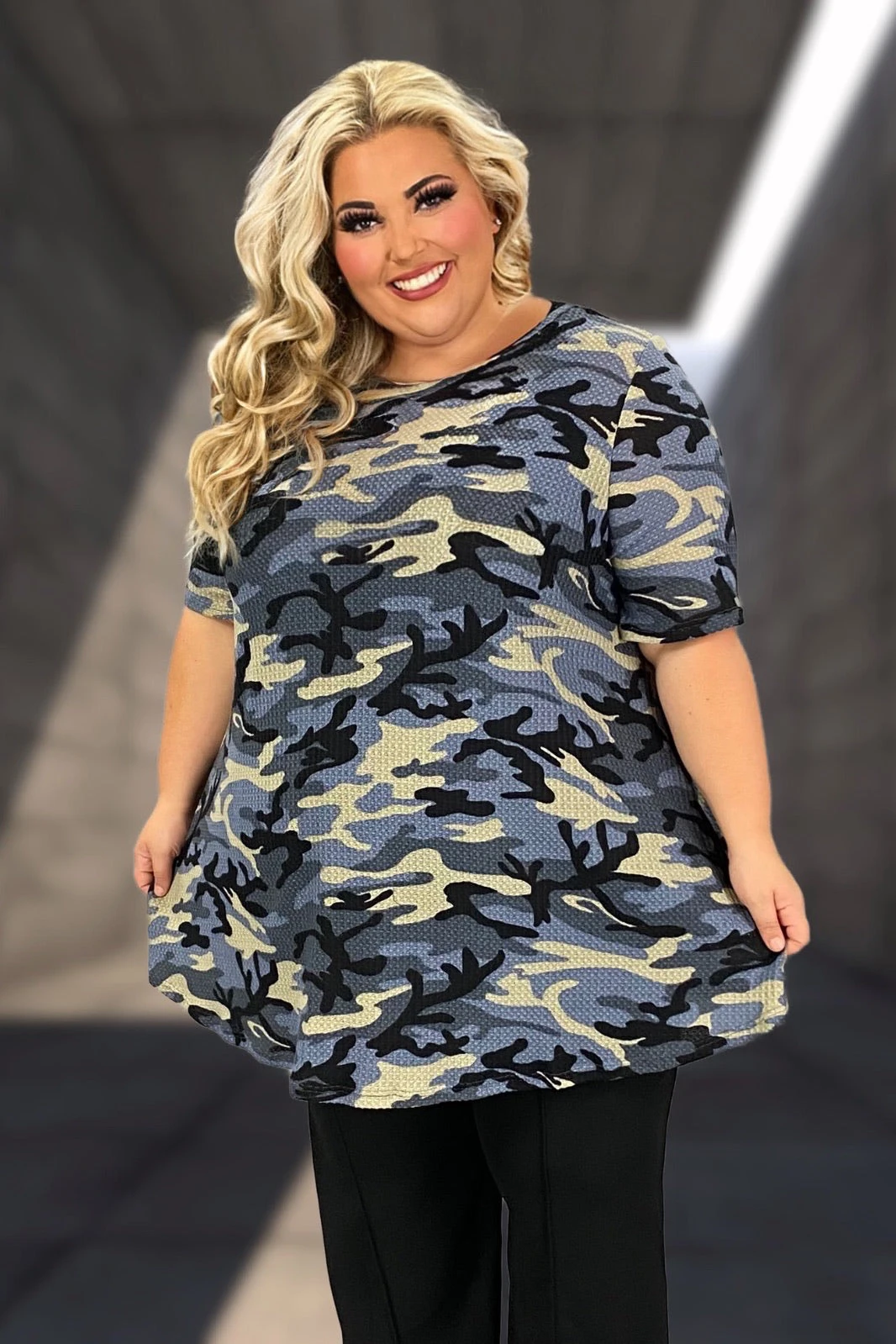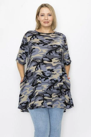33 PSS {Stay Hidden} Navy Camo Waffle Knit Tunic EXTENDED PLUS SIZE 3X 4X 5X