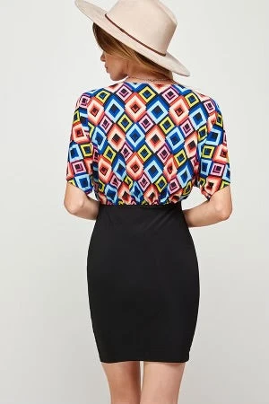 34 SET {Colorful Diamond} Black 2PC Set Dress PLUS SIZE 1X 2X 3X