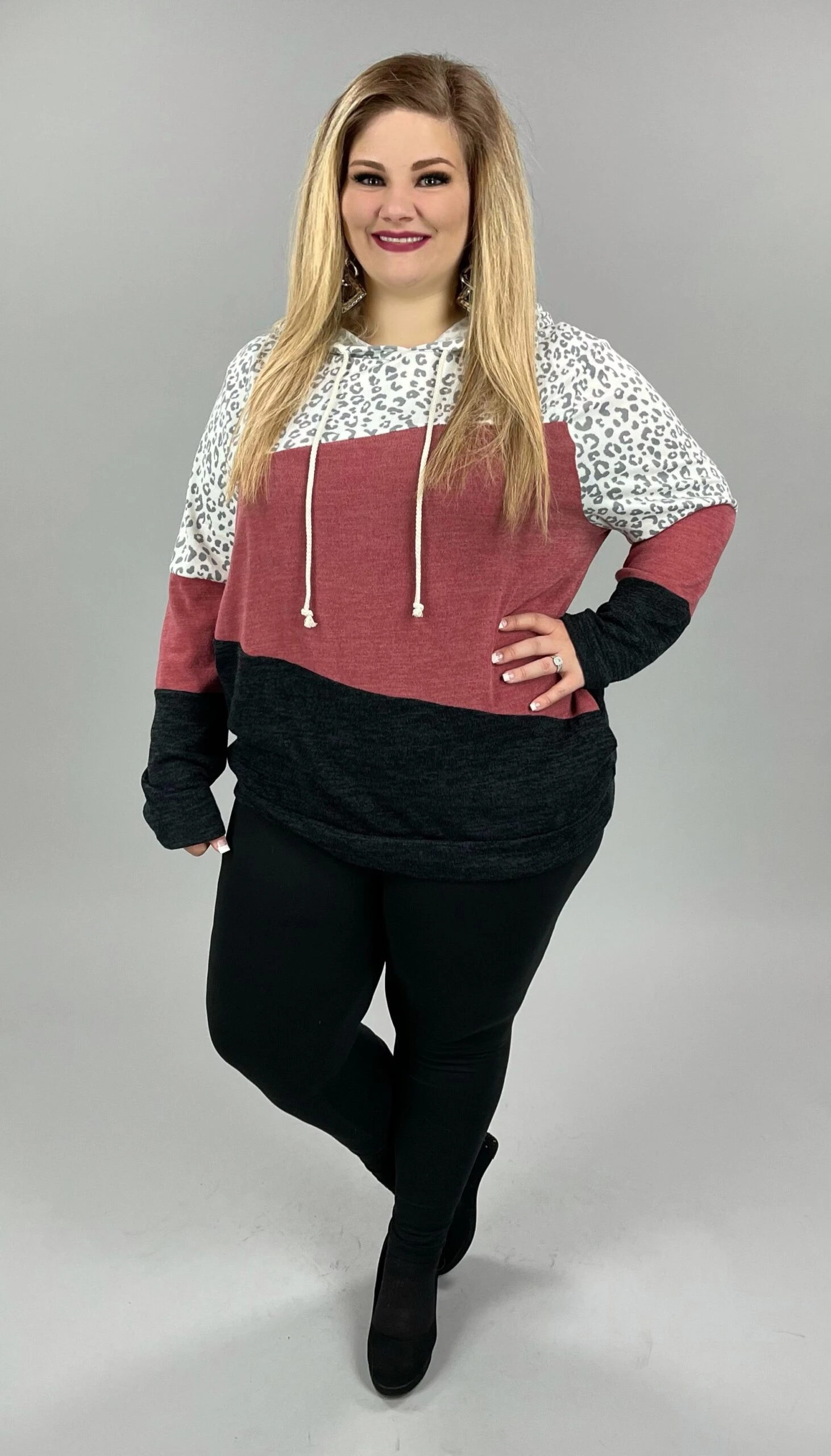 35 HD-C {My Best Guess} Dark Mauve Animal Print Hoodie PLUS SIZE 1X 2X 3X