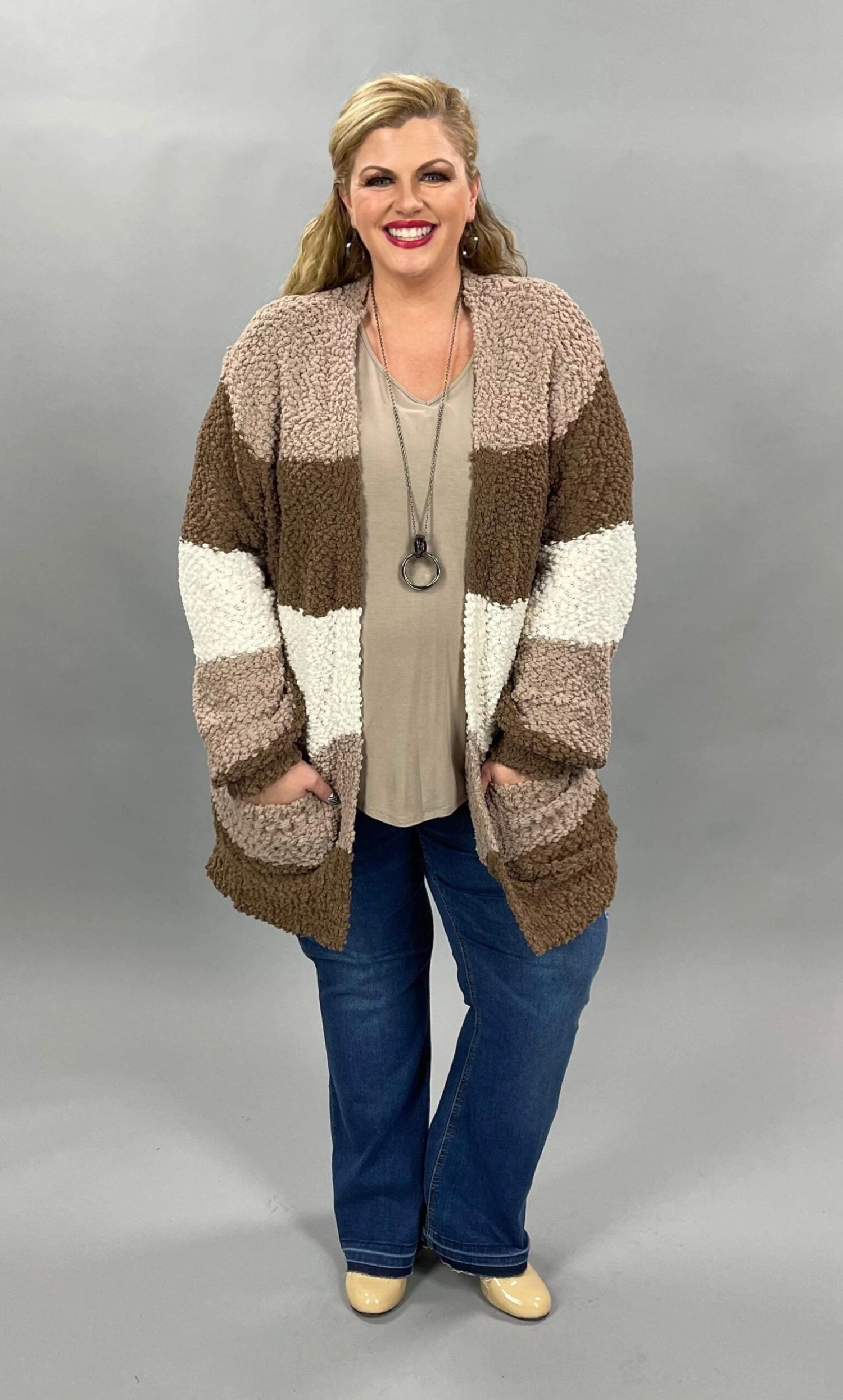 35 OT-A {Get Cozy} Mocha Brown Ivory Popcorn Cardigan PLUS SIZE XL 2X 3X
