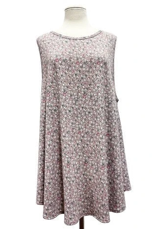35 SV-W {Ready To Have Fun} Mauve Floral Sleeveless Top EXTENDED PLUS SIZE 3X 4X 5X