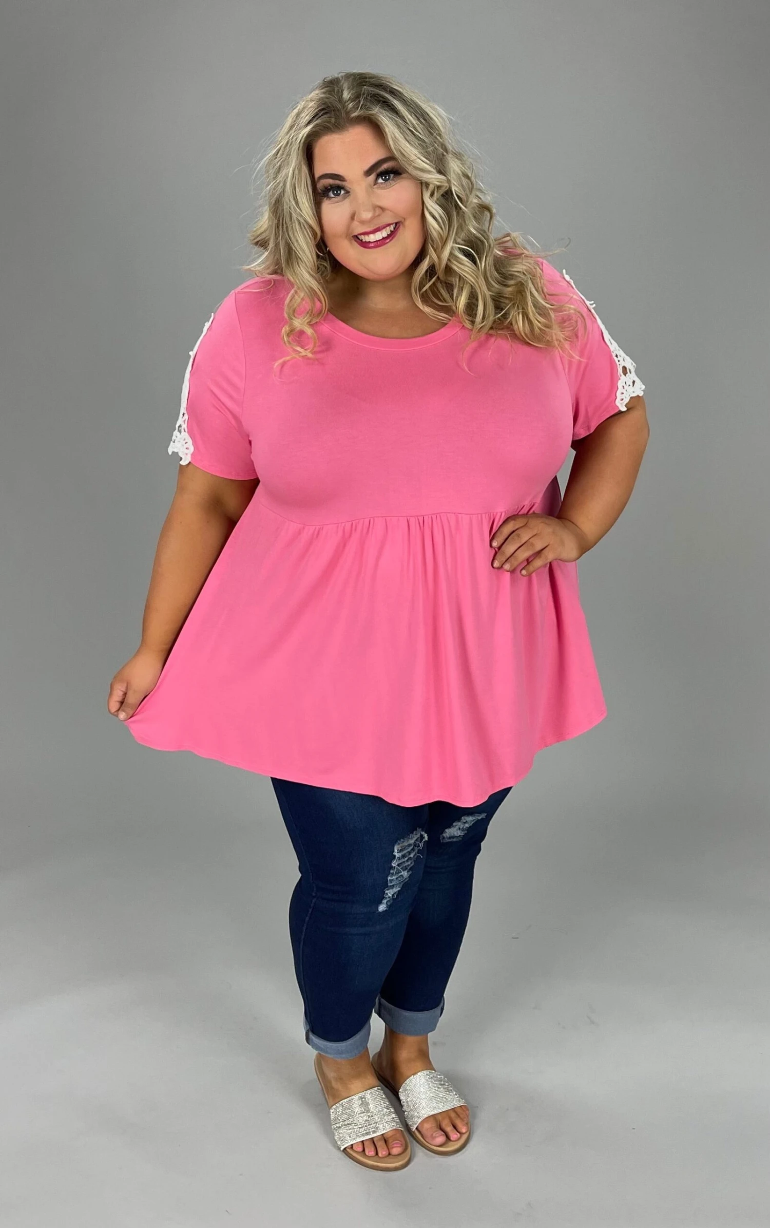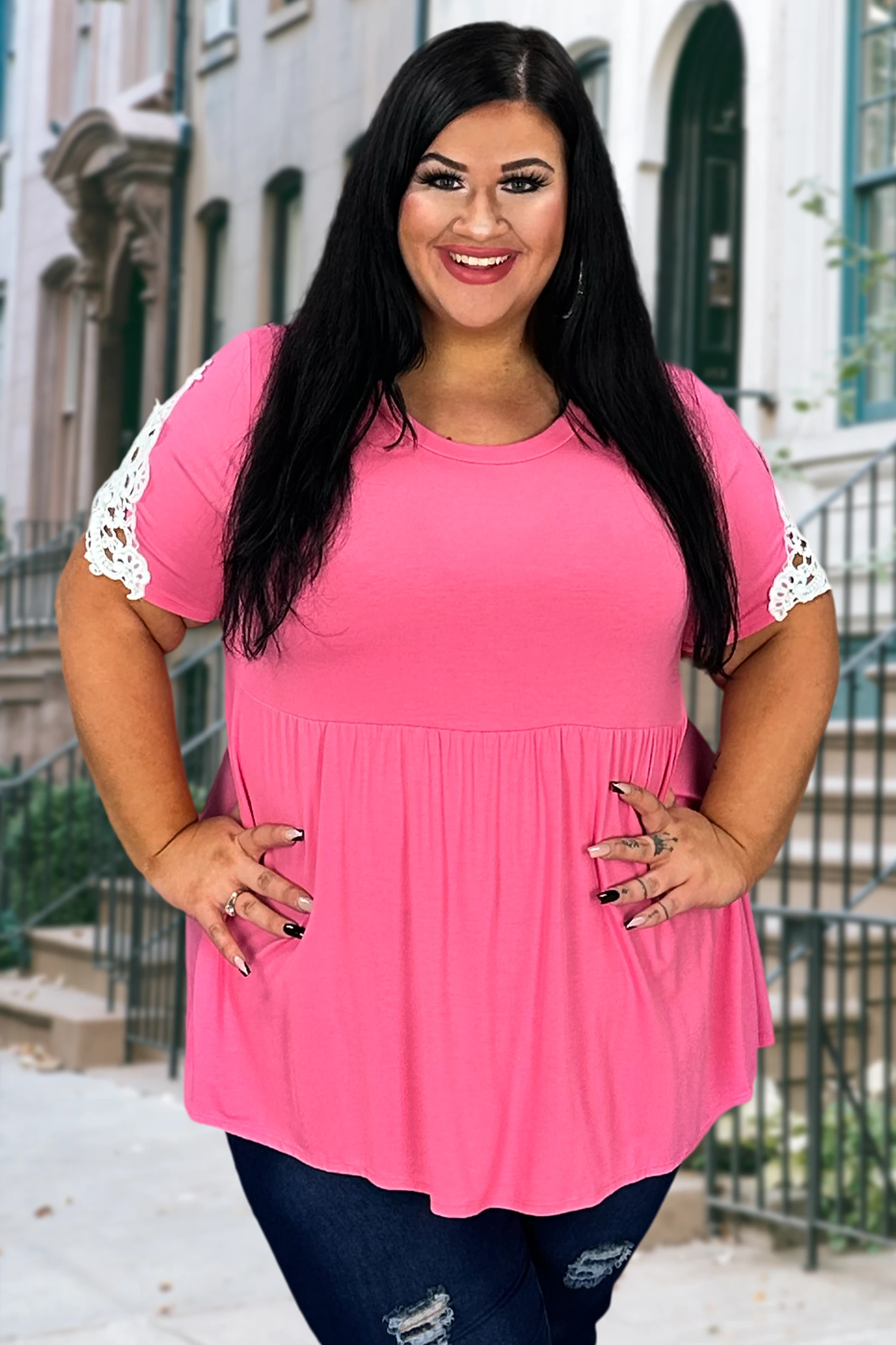 36 SD-B {Something Special} PINK *Babydoll Lace Sleeve Top SALE!!! PLUS SIZE 1X 2X 3X